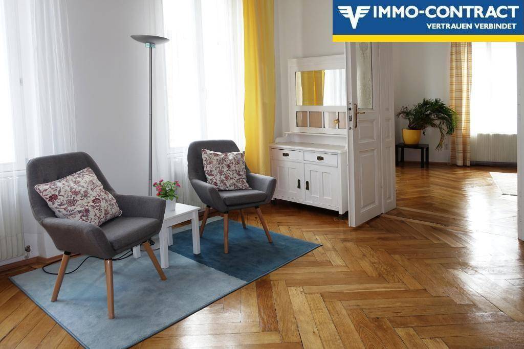 Wohnen im Volksopernviertel Diese repräsentative Etagenwohnung in einem historischen Gründerzeithaus aus dem Jahre 1881 befindet sich im 2. Liftstock und besticht durch die innerstädtische Lage, einem großzügigen Raumkonzept sowie die Erfüllung höchster Wohnansprüche. Die hohen Wohnräume sind mit hochwertigen Echtholzparketten, Flügeltüren teilweise mit Glasfüllungen und behutsam sanierten Kasten-Fenstern versehen. Diese Altbauwohnung gliedert sich in einen geräumigen Wohn-Essbereich mit offener Küche (ca. 50 m²) und einem Erker, vier Zimmer, zwei Vorräume, zwei Bäder und drei WC´s und wird durch zwei separate Eingänge erschlossen. Dadurch bietet sich zusätzlich die Möglichkeit für eine Wohn-Büronutzung oder Generationenwohnung. Ein gemütlicher Balkon in den Innenhof lädt zum Entspannen ein. Des Weiteren steht noch ein Kellerabteil und ein Fahrradraum zur Verfügung. Die Geschäfte des täglichen Bedarfs sowie ein umfangreiches gastronomisches Angebot in unmittelbarer Umgebung garantieren eine optimale Nahversorgung. Die öffentliche Verkehrsanbindung ist durch die U-Bahnlinie U6 ("Währinger Straße-Volksoper"), die Straßenbahnlinien 33, 37, 38, 40, 41, 42, 5 und die Buslinie 40A gewährleistet. Rufen Sie mich an, ich stehe Ihnen für weitere Informationen, Besichtigungen und Finanzierungsfragen gerne zur Verfügung Frau Ing. Mag. Sabina Fuhrmann, Tel. 050/450-576 oder 0676/841 420-576 Rund 3.000 aktuelle Immobilien: www.IMMO-CONTRACT.com wir danken für Ihre EmpfehlungAngaben gemäß gesetzlichem Erfordernis: Miete € 1920 zzgl 10% USt. Betriebskosten € 352 zzgl 10% USt. Umsatzsteuer € 227,2 ------------------------------------------------------------------ Gesamtbetrag € 2499,2 ------------------------------------------------------------------ Heizwärmebedarf: 59.0 kWh/(m²a) Klasse Heizwärmebedarf: C