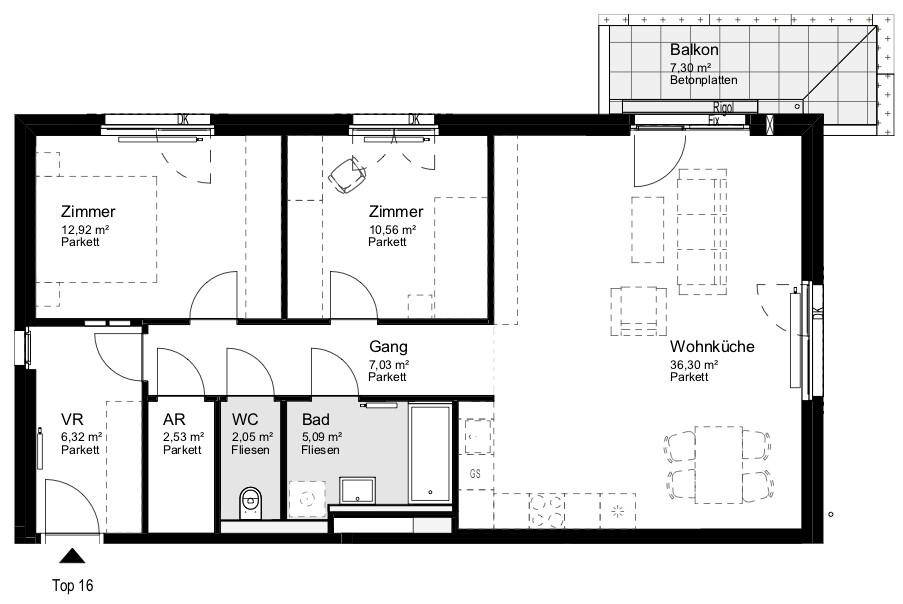 Diese 3 Zimmer Wohnung mit Balkon befindet sich im 2. Obergeschoss des modernen Wohnhauses. Der Balkon ist vom Wohnbereich erreichbar. Insgesamt verfügt die Wohnung über 2 Schlafzimmer sowie über eine Wohnküche, ein Badezimmer mit Wanne, ein WC sowie einen geräumigen Abstellraum. Die benötigten Eigenmittel belaufen sich auf € 12.420.