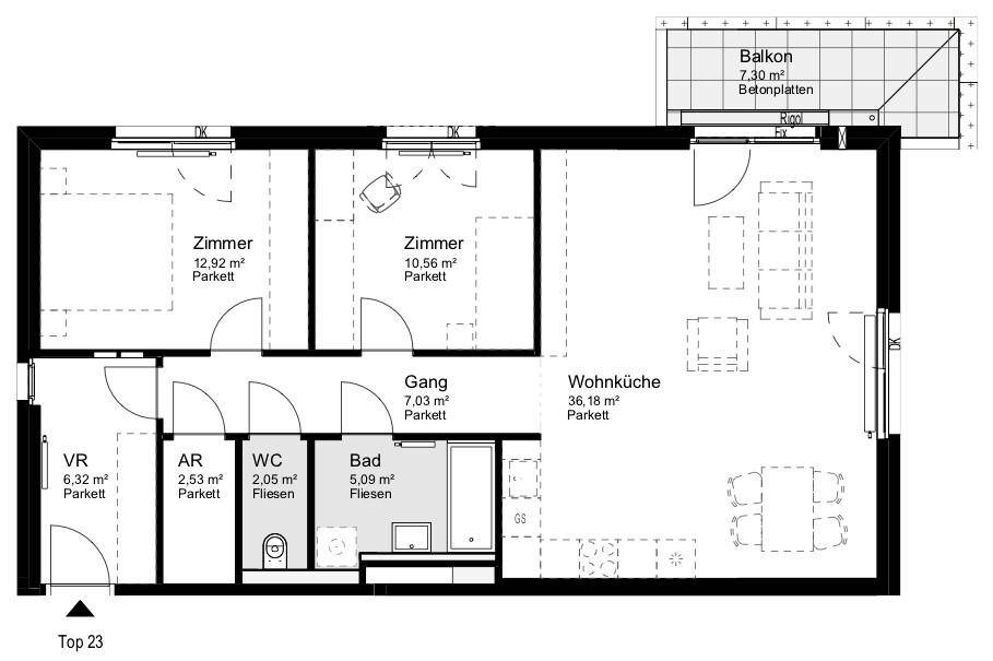 Diese 3 Zimmer Wohnung mit Balkon befindet sich im 3. Obergeschoss des modernen Wohnhauses. Der Balkon ist vom Wohnbereich erreichbar. Insgesamt verfügt die Wohnung über 2 Schlafzimmer sowie über eine Wohnküche, ein Badezimmer mit Wanne, ein WC sowie einen geräumigen Abstellraum. Die benötigten Eigenmittel belaufen sich auf € 12.402.