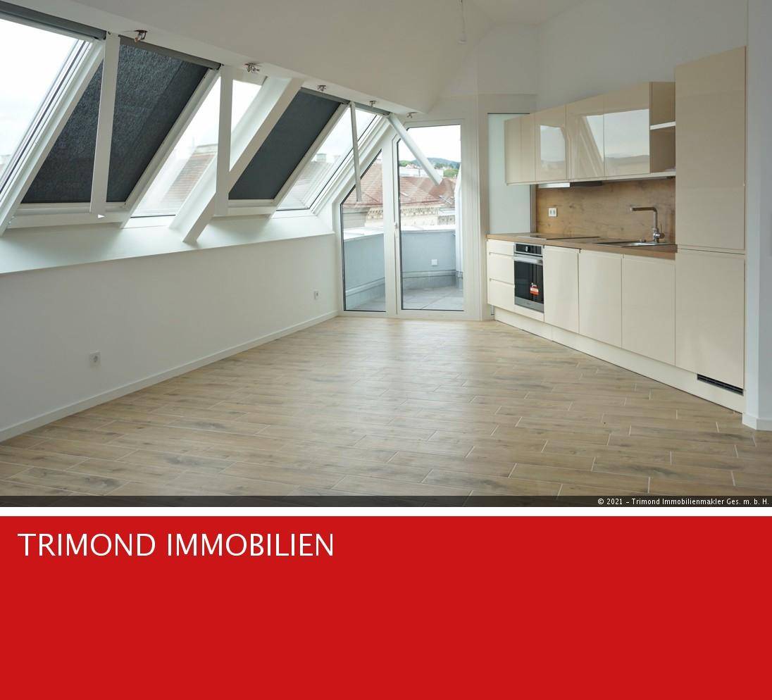 ERSTBEZUG! Neu ausgebaute und hochwertig ausgestattete Dachgeschoßwohnung mit Außenfläche - Wattgasse / Hernalser Hauptstraße - zu vermieten. Die Wohnung liegt im neu ausgebauten Dachgeschoß (mit Lift) und besteht aus einem Wohnzimmer mit Kochnische und Ausgang auf die uneinsichtige Terrasse, einem Schlafzimmer, einem Bad mit Dusche, Waschbecken, einem Handtuchhalter und einer Toilette, einem Abstellraum mit WM-Anschluss sowie einem Vorraum. Die Küche ist mit einem DAN Küchenblock eingerichtet und mit allen Geräten, wie Herd, Dunstabzug, Geschirrspüler, Eiskasten - Gefrierkombination und Spüle ausgestattet. Die Parkett / Fliesenböden in Holzoptik, Fußbodenheizung, die Jalousien sowie die Vollklimatisierung runden das sehr schöne und hochwertige Gesamtbild der Wohnung ab! Die Wohnung wurden gerade fertiggestellt und ist per sofort bezugsfähig! Hervorzuheben ist auch die tolle Lage des Objektes. Man ist sehr gut und schnell an die Stadt angeschlossen, hat aber auch verschiedene Naherholungsmöglichkeiten (z.B.: Heuberg, Schafberg, Kongresspark / Kongressbad) in unmittelbarer Nähe zur Wohnung! Sehr gute Verkehrsanbindung: Straßenbahnlinie 43, 9 Buslinie 42A, 44A, 10A, sowie ab 2025 die U5, welche bis zum Eterleinplatz fahren wird! Diese tolle Lage, sowie die hochwertige Ausstattung zählen zu den Highlights des Objektes. Energiekennziffern wurden beim Eigentümer angefragt (§ 9 Abs/ EAVG 2012) Terminvereinbarungen unter 01/713 58 22 Trimondreal "Unsere Homepage wird täglich mit neuen Objekten aktualisiert" Für allfällige Fehlinformationen bzw. Irrtümer in den Angaben übernehmen wir keine Haftung! Nähere Informationen über die Datenschutzverordnung finden sie unter www.trimond.at