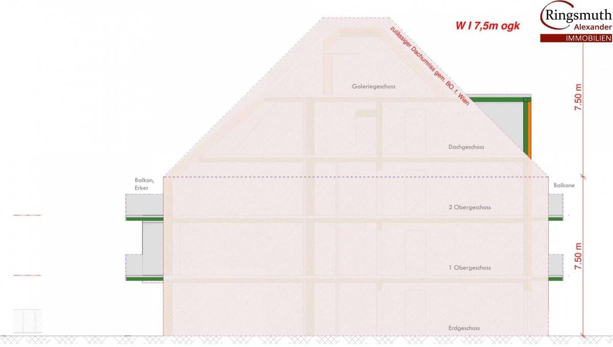 Sehr gut bebaubares Eck-Grundstück in grüner Lage in FloridsdorfWohnbauprojekt; Bauklasse W I 7,5m ogk, Grundstücksgröße 729m²Erzielbare Flächen in ca.-Angaben (Studie vorhanden) ca. 789m² WNFL + ca. 176m² Balkone und Terrassen + ca. 383m² Gartenflächen + 11 Stellplätze in TiefgarageAnfragen bitte nur schriftlich per Email! In der Nähe zweier klassischer Wiener Heurigen-Gegenden. Mehrere Heurigenbetriebe fußläufig erreichbar.Zahlreiche ausgebaute Fahrradwege (direkt an der Verbindung der Radwege Marchfeldkanal, Jedlersdorferstraße).VS, NMS bzw. AHS (GRG21) in einer Straße in der Nachbarschaft direkt fußläufig <5min erreichbar.Öffentliche Verkehrsmittel:B17, B3, A22OPV65m <1min SteinamangergasseBus Linie 30A Siemensstraße - Stammersdorf, FreiheitsplatzBus Linie 32A Strebersdorf – Leopoldau250m <3,5min Ödenburger str./SchulzentrumRBus 228 Floridsdorf - Hagenbrunn - WolkersdorfRBus 426 Floridsdorf Wolkersdorf - MistelbachRBus 7552 Wien - Mistelbach - Laa/Thya690m 10,5min Carabelligasse Linie 30 Floridsdorf - Stammersdorf (21min mit Linie 30 am Bhf Floridsdorf)Linie 31 Schottenring - StammersdorfBus 36A Carabelligasse - Jedlesee, BellgasseBus 36B Leopoldau - Jedlesee, BellgasseBus 420 Floridsdorf - Wolkersdorf - Bad Pirawarth - ZistersdorfBus 431 Floridsdorf – Poysdorf - Bernhardsthal oder Laa/Thayawww.ringsmuth.atWir weisen ausdrücklich auf unser wirtschaftliches Naheverhältnis mit dem Abgeber/der Abgeberin und auf unsere Vermittlungstätigkeit als Doppelmakler hin.Irrtum und Änderungen vorbehalten!Infrastruktur / EntfernungenGesundheit Arzt <1.000m Apotheke <1.000m Krankenhaus <2.000m Klinik <3.500m Kinder & Schulen Schule <500m Kindergarten <1.000m Universität <2.000m Höhere Schule <3.000m Nahversorgung Supermarkt <1.000m Bäckerei <1.000m Einkaufszentrum <1.500m Sonstige Bank <1.000m Geldautomat <1.000m Post <1.000m Polizei <1.500m Verkehr Bus <500m Straßenbahn <1.000m U-Bahn <3.000m Bahnhof <1.500m Autobahnanschluss <2.000m Angaben Entfernung Luftlinie / Quelle: OpenStreetMap