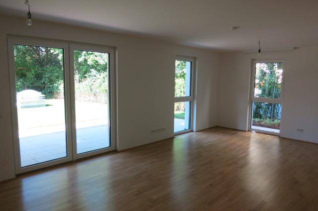 Gartenwohnung in der Jägerhausgasse Die Wohnung befindet sich in einem nach dem letzten Stand der Technik, barierrefrei errichteten Niederenergiehaus das mittels Erdwärme beheizt und wird. Die Wohnung befindet sich im Erdgeschoss und gliedert sich in einen Vorraum, ein Badezimmer mit Wanne und bodenebener Dusche, ein separates WC, ca. 37 m² großes Wohnzimmer mit Komplettküche und Ausgang in den ca. 250 m² großen Eigengarten mit 77 m² großer Gartenterrasse, zwei Schlafzimmer und ein Abstellraum. Ausstattungsdetails: Fußbodenheizung, Sicherheitstüre, Alarmanlage, Kellerabteil, Verkabelung für Internet. Im Haus kann ein Tiefgaragenplatz um € 120,-- angemietet werden. Befristung 4-10 Jahre