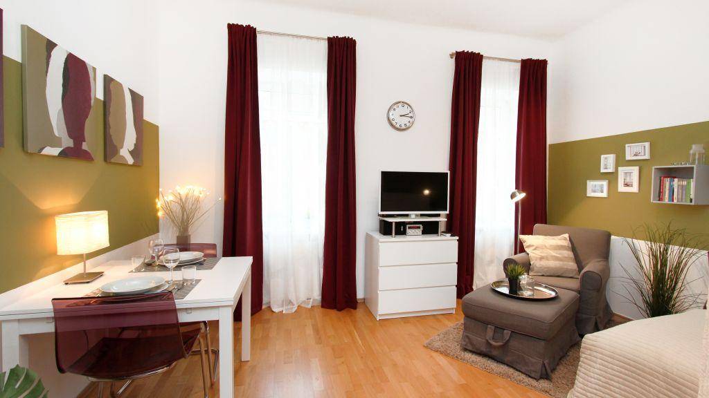 In einem traditionellen Jahrhundertwendehaus befindet sich das entzückende Apartment in der Spengergasse. Nach dem Motto "Klein, aber fein" ist es in freundlichem Ambiente gestaltet. Das Apartment liegt im 3. Stock (ohne Lift) in einer ruhigen Seitengasse im 5. Bezirk nahe dem schönen Margaretenplatz und dem traditionellen Naschmarkt. Für einen gemütlichen Aufenthalt stehen Ihnen zur Verfügung:-Voll ausgestattete Küche samt Koch- und Essgeschirr, Kühlschrank, Mikrowellengrill, Herdplatten, Kaffeemaschine, Wasserkocher, Toaster-Moderne Geräte wie Waschmaschine, Bügeleisen, Staubsauger, Ventilator, CD/DVD Player, Haarfön-TV Gerät mit deutsch- und mehrsprachigen Programmen (ORF, RTL, PRO7, CNN, TV5, RAI,...)-Doppelbett (160x200 cm), Bettwäsche und HandtücherBreitband-Internet (WLAN)- auf Anfrage Laptop und ReinigungsdienstIn dem Apartment haben 4 Personen Platz, zusätzliche Kosten fallen wie unten angegeben, erst ab dem 3. Gast an.Eine Anreise ist nur zwischen 12:00 - 19:00 Uhr möglich. Bei einer Anreise am Wochenende wird noch zusätzlich ein Zuschlag von Euro 40,- verrechnet. Energieausweis Dieses Gebäude unterliegt nicht den Anforderungen der EnEV.