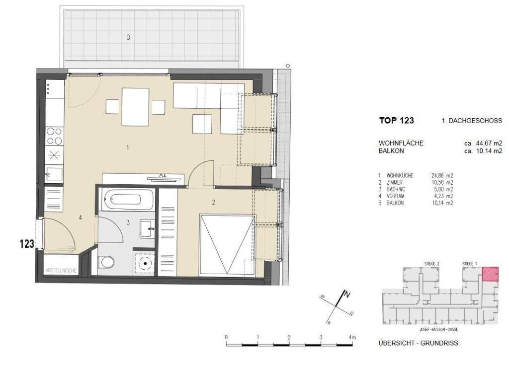 RESERVIERT WOHNEN UND INVESTIEREN IM GRÜNEN: Das neue Wohnhaus ist umgeben von Gärten. Es gruppiert 69 komfortable, provisionsfreie Eigentumswohnungen von 37 bis 109m2 auf vier Etagen um zwei offene Innenhöfe. Die anspruchsvolle Ausstattung reicht von edlen Materialien bis zur Smart Home-Technologie. Die Kaufpreise für Endkunden (Eigennutzer) starten ab EUR 159.500,- für knappe 37m². Eine vollständige Liste inkl. Preise für verfügbare Wohnungen gibt es auf Anfrage. Geplante Fertigstellung: 2021 Die gegenständliche Wohnung hat ca. 44,67m² für einen Preis von EUR 230.582,- Garagenplatz: EUR 21.100,- Garagenplatz für Investoren: EUR 19.186 Benefits & Goodies: + 2 Zimmer mit knapp 25m² Wohnküche + Terrassenfläche mit ca. 10m² + Fußbodenheizung + in wenigen Minuten zu Fuß zur Neuen Donau! + Merkur, Spar LIDL und Billa in Fußweite + Arzt und Apotheke ebenso in Fußweite + wenige Autominuten entfernt von Einrichtungshäusern und Baumärkten oder auch dem SCN + Busse in Gehweite + A22 Donauuferautobahn in 6 Minuten mit dem Auto zu erreichen + Tiefgaragenplatz OPTIONAL Die Lage ist ideal für Kinder In einer Sackgasse zwischen zwei Kleingartensiedlungen nahe der Neuen Donau und Wiens größtem und beliebtestem Freizeitareal, der Donauinsel. Hier am Nordrand Wiens wohnt man mit optimalem Preis-Leistungs-Verhältnis im Grünen, ohne auf die gute Nahversorgung der Stadt verzichten zu müssen. Nahversorgung In nur 7 Minuten erreicht man zu Fuß den Merkur-Supermarkt, die Apotheke und den praktischen Arzt. In bis zu 12 Minuten Fußweite befinden sich auch ein Spar, LIDL und Billa Supermarkt. Mit dem Auto erreicht man in 7-9 Minuten die Möbelhäuser Lutz und Möbelix, einen Media Markt, OBI Baumarkt und für Shoppingtouren das SCN Shopping Center Nord. Verkehrsanbindung Die Autobuslinien 34A und 36A liegen 7 Gehminuten entfernt. Öffentlich ist man zur U6 Station Floridsdorf, zu den Schnellbahnen S1, S2, S3, S4, S7 und zu den Zügen des Fernverkehrs 18 Minuten unterwegs. Mit dem Auto erreicht man die A22 Donauufer-Autobahn in 6 Minuten, den Flughafen in 22 Minuten. Ein Radweg führt unmittelbar an der Gartensiedlung vorbei nach Floridsdorf oder zum Uferweg der Neuen Donau. Ausstattung • Hauseigene Tiefgarage • Grünflächen • Top Infrastruktur • Loggia oder Balkon • Eigengarten (je nach Typ) Irrtümer und Druckfehler vorbehalten.Angaben gemäß gesetzlichem Erfordernis: Heizwärmebedarf: 34.01 kWh/(m²a) Klasse Heizwärmebedarf: B Faktor Gesamtenergieeffizienz: 0.9 Klasse Faktor Gesamtenergieeffizienz: A Kontakt: Mag. Christian Gölles 0699 110 79 565 cg@etera-immobilien.at Etera Immobilien Consulting - Experience Excellence