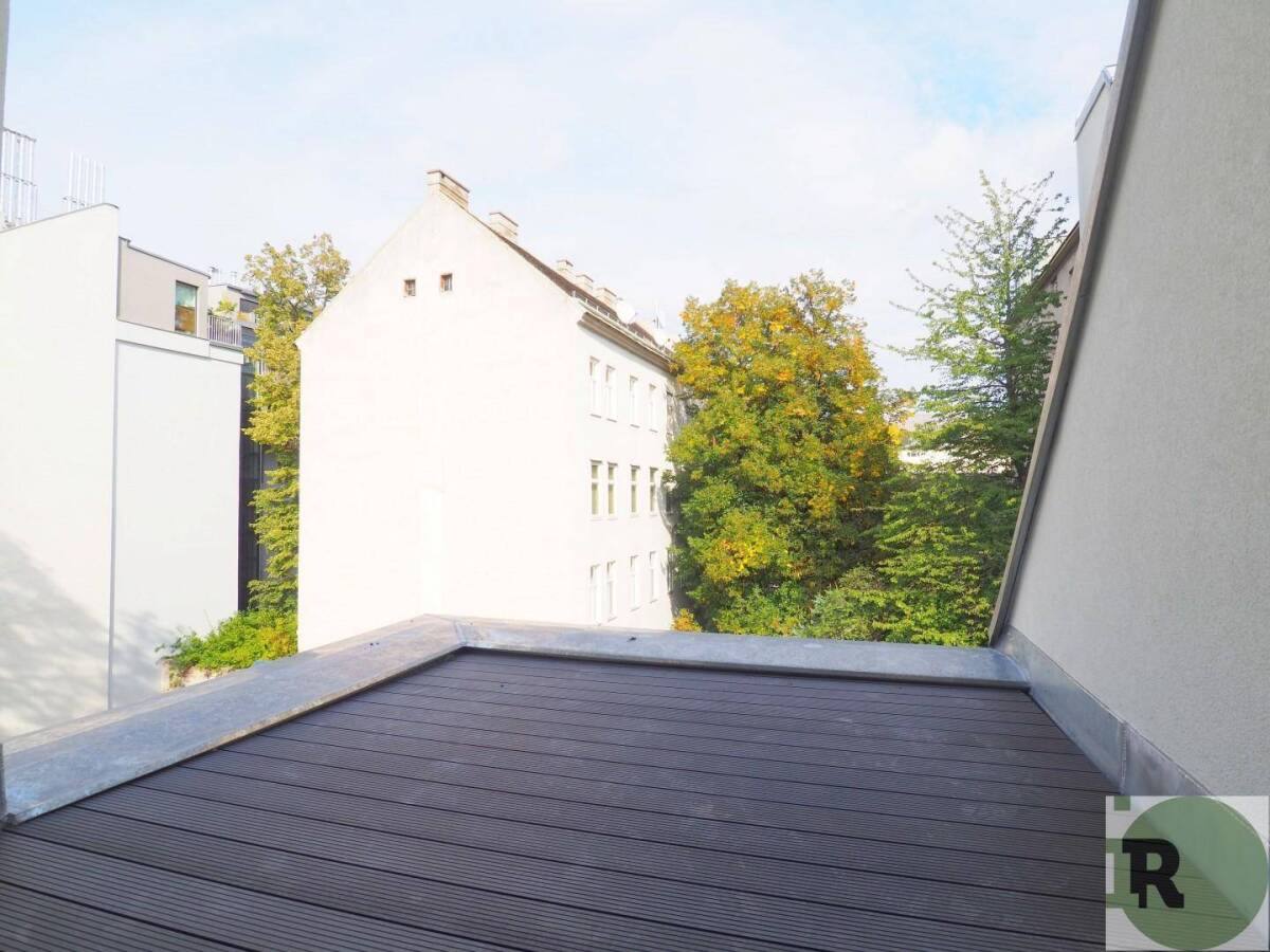 Zur befristeten Vermietung gelangt diese knapp 74m² große 2,5 Zimmerwohnung mit Terrasse. Sie befindet sich im neu ausgebauten Dachgeschoß (2. Stock ohne Lift) eines soeben sanierten Hofgebäudes. Über den Eingang gelangen Sie direkt in den ca. 13m² großen, offenen Vorraum. Dieser würde sich auf Grund der großen Fensterfront und der damit verbundenen Helligkeit ideal als Arbeitsbereich eignen. Der wunderschöne Echtholzdielenboden verleiht umgehend ein angenehmes Wohngefühl. Die ca. 38m² große Wohnküche bietet genügend Platz für einen Ess - als auch einen Wohnbereich. Die in weiß gehaltene Küche ist vollausgestattet und lässt keine Wünsche offen. Das Highlight der Wohnung ist die ca. 7,2m² große Terrasse, die praktischer Weise direkt über die Küche zu betreten und in den Innenhof ausgerichtet ist. Der Terrassenzaun aus Glas wurde selbstverständlich schon bestellt und wird vor Einzug montiert. Das Schlafzimmer befindet sich am anderen Ende der Wohnung und misst ungefähr 16 m². Das geschmackvoll verflieste Badezimmer wurde mit einem Waschtisch, Handtuchheizkörper, Waschmaschinenanschluss und einer großzügigen, bodengleichen Dusche versehen. Aufteilung: • Vorraum mit Arbeitsbereich • Wohnküche mit vollausgestatteter Küche • Schlafzimmer • Terrasse • Badezimmer mit bodengleicher Dusche • separate ToiletteInfrastruktur / EntfernungenGesundheit Arzt <500m Apotheke <500m Krankenhaus <1.000m Klinik <1.500m Kinder & Schulen Schule <500m Kindergarten <500m Universität <1.000m Höhere Schule <1.500m Nahversorgung Supermarkt <500m Bäckerei <500m Einkaufszentrum <1.000m Sonstige Bank <500m Geldautomat <500m Post <500m Polizei <500m Verkehr Bus <500m Straßenbahn <1.000m U-Bahn <500m Bahnhof <1.000m Autobahnanschluss <3.500m Angaben Entfernung Luftlinie / Quelle: OpenStreetMap