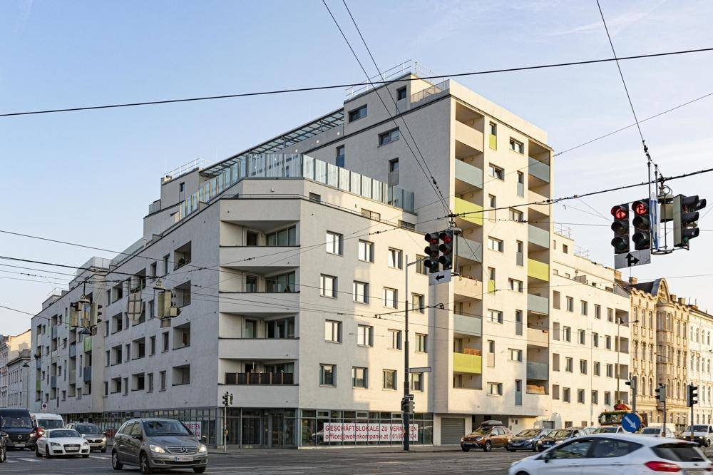 Dieses eindrucksvolle Gebäude verfügt über insgesamt 10 Stockwerke und 124 traumhafte Wohnungen. Die Mietwohnungen bieten einen vielfältigen Lebenskomfort mit 2 bis 4 Zimmer und Wohnflächen von ca. 45m² bis ca. 124m². Es gibt einen schönen begrünten Innenhof mit einem Kinderspielplatz und eine Terrasse im 6.OG inklusive einem Tischtennistisch, Parkbänken und andere Spielmöglichkeiten. Zur inkludierten Ausstattung zählen eine gut ausgestattete Küche, ein tolles Badezimmer, hochwertiger Eichen-Parkettboden, schöne Fliesen und ein Kellerabteil. Helle Wohnräume, offene Grundrisskonzepte und attraktive Freiflächen bei jeder Wohnung überzeugen. Eingebunden in ein optimales Verkehrsnetz kann man hier die Vorzüge des urbanen Lebens erfahren. Die Wohnung besteht aus: - Vorzimmer - Wohn / Küche - zwei Schlafzimmer - Badezimmer mit Badewanne - getrenntes WC - Abstellraum - Loggia
