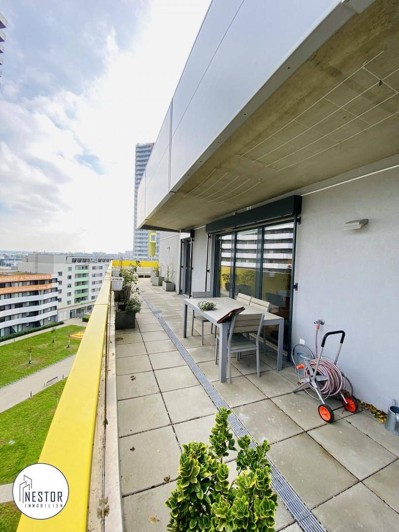 Sie verkaufen Ihre Immobilie oder kennen jemanden? Jetzt bei mir melden und sofort bis zu 2500 Euro für jeden Tipp kassieren!!Riesige Terrasse (65m²) - Großzügige 4 Zimmer Wohnung mit ca. 94m² Wohnfläche - U1 (Station Aderklaaer Straße)Die Wohnung (Baujahr 2015) liegt im 8.Liftstock, ist sehr ruhig in den sehr großen Innenhof gelegen und Süd/Ostseitig ausgerichtet. Man hat dank der großen Terrasse somit den ganzen Tag Sonne, im Sommer kann man auch immer wieder in den Schatten ausweichen.Die Terrasse erstreckt sich entlang der gesamten Wohnung und kann von jedem Zimmer aus begangen werden. Das Schlafzimmer bietet zusätzlich einen (bereits eingerichteten) Schrankraum. Auch das Bad ist mit einem großen Fenster zur Terrasse ausgestattet. Alle Fenster (Holz-Alu) und Terrassentüren sind mit fernsteuerbaren Raffstores (Hella) versehen. Zusätzlich befinden sich überall auf der Innenseite Plissees.Das Badezimmer ist sehr modern eingerichtet mit schönen großen Fließen und großzügig geplant (geräumige Regendusche, LED-Lichtleisten, Doppelwaschbecken, hochwertiger Handtuchheizkörper, elektrische Fußbodenheizung, halbdurchsichtiger Spiegel als Raumtrenner).In der Küche wurde neben der Optik auch großen Wert auf Qualität gelegt (alle Geräte von Bosch, Weinkühlschrank von Liebherr). Steinplatte. Sehr hochwertige Ausstattung. Die maßangefertigte Garderobe besticht durch feines Leder und eine LED beleuchtete Kleiderstange.Die auf den Fotos zu sehende, hochwertige Möblierung (Küche, Couch, etc.) ist im Kaufpreis inkludiert bzw. nach Absprache möglich.Lage2 Minuten zu Fuß zur U1 (Station Aderklaaer Straße) sowie zahlreiche Geschäfte, Restaurants und Supermärkte in Gehentfernung. Weiters gibt es einen Kindergarten in der Anlage und mehrere Schulen in unmittelbarer Umgebung.Ein Exposé inklusive Grundriss / Pläne / Energieausweis sende ich Ihnen gerne per Email zu, einfach hier direkt eine Anfrage mit vollständigen Kontaktdaten stellen. Kaufpreis: € 569.000,- Preis VerhandelbarBetriebskosten: ca. 147 Euro inkl. USt monatlich + sonstige KostenProvision: 3% + USt. Heizung und Warmwasser werden nach Verbrauch abgerechnet.Sie verkaufen Ihre Immobilie oder kennen jemanden? Jetzt bei mir melden und sofort bis zu 2500 Euro für jeden Tipp kassieren!!Für weitere Unterlagen (Energieausweis, Grundriss, etc.) bitte das Expose hier direkt mit Ihren Kontaktdaten anfordern.Ich biete Ihnen einen CoVid19-freundlichen Besichtigungstermin an und bin rundum die Uhr für Sie verfügbar, gerne auch an Sonn- und Feiertagen, einfach anrufen:Daniel Rudigier, M.Sc.Mobil.: +43 664 / 50 28 005E-Mail: dr@immonestor.atNESTOR Immobilien GmbH & Co KGWagramer Straße 102 A-1220 WienTel.: + 43 1 / 203 96 66 www.immonestor.atBITTE BEACHTEN SIE, DASS WIR AUFGRUND DER NACHWEISPFLICHT GEGENÜBER DEM EIGENTÜMER NUR ANFRAGEN MIT VOLLSTÄNDIGER ANGABE DER KONTAKTDATEN BEARBEITEN KÖNNEN.Infrastruktur / EntfernungenGesundheit Arzt <500m Apotheke <500m Klinik <4.500m Krankenhaus <3.500m Kinder & Schulen Schule <500m Kindergarten <500m Universität <2.000m Höhere Schule <2.000m Nahversorgung Supermarkt <500m Bäckerei <1.000m Einkaufszentrum <500m Sonstige Bank <500m Geldautomat <500m Post <500m Polizei <1.000m Verkehr Bus <500m U-Bahn <500m Straßenbahn <2.000m Bahnhof <500m Autobahnanschluss <2.000m Angaben Entfernung Luftlinie / Quelle: OpenStreetMap