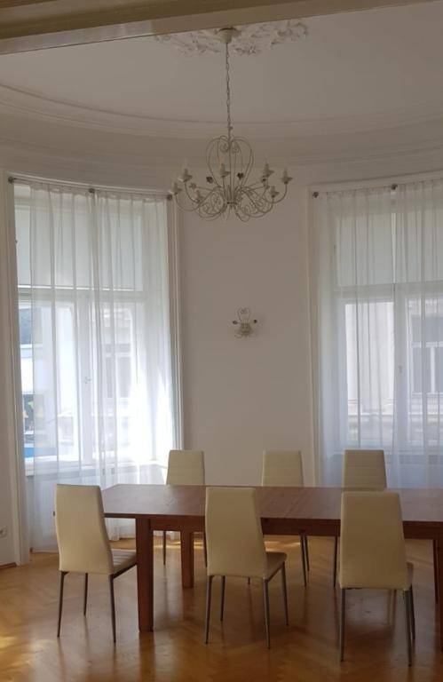 Sonnendurchflutete, südwestseitige, topsanierte, elegante Stilaltbauwohnung in repräsentativem Stadtpalais im Botschaftsviertel des 4. Bezirks, in unmittelbarer Nähe der Karlskirche, des Belvedere und Schwarzenbergplatzes, wenige Gehminuten zur Innenstadt. R A U M A U F T E I L U N G Großzügiges Entree, Garderobe, Gäste WC runder Ecksalon (ca. 27 m²) 1 weiterer Salon / Speisezimmer (ca. 32 m²), Küche (ca. 15 m²) Abstellraum 2 weitere Zimmer (ca. 23 und 24 m²), eines davon mit en-suite Badezimmer (mit Badewanne, Dusche, Doppelwaschtisch, Bidet, WC), ein weiteres Duschbad (mit Waschtisch, WC sowie Anschlüssen für Waschmaschine und Wäschetrockner) A U S S T A T T U N G Die Wohnung ist teilmöbliert • Eichenholz Parkettboden • sanierte Flügeltüren • komplett möblierte Küche mit sämtlichen Elektrogeräten • hochwertige Sanitärausstattung in den Bädern • Marmorböden und -wände, • Stuckdecken bei ca. 3,70 m Raumhöhe • Kabel TV • Gasetagenheizung. Pkw Abstellplätze können in unmittelbarer Nähe angemietet werden.Angaben gemäß gesetzlichem Erfordernis: Miete € 2160 zzgl 10% USt. Betriebskosten € 286,44 zzgl 10% USt. Umsatzsteuer € 244,64 ------------------------------------------------------------------ Gesamtbetrag € 2691,08 ------------------------------------------------------------------ Heizwärmebedarf: 91.63 kWh/(m²a) Faktor Gesamtenergieeffizienz: 2.0