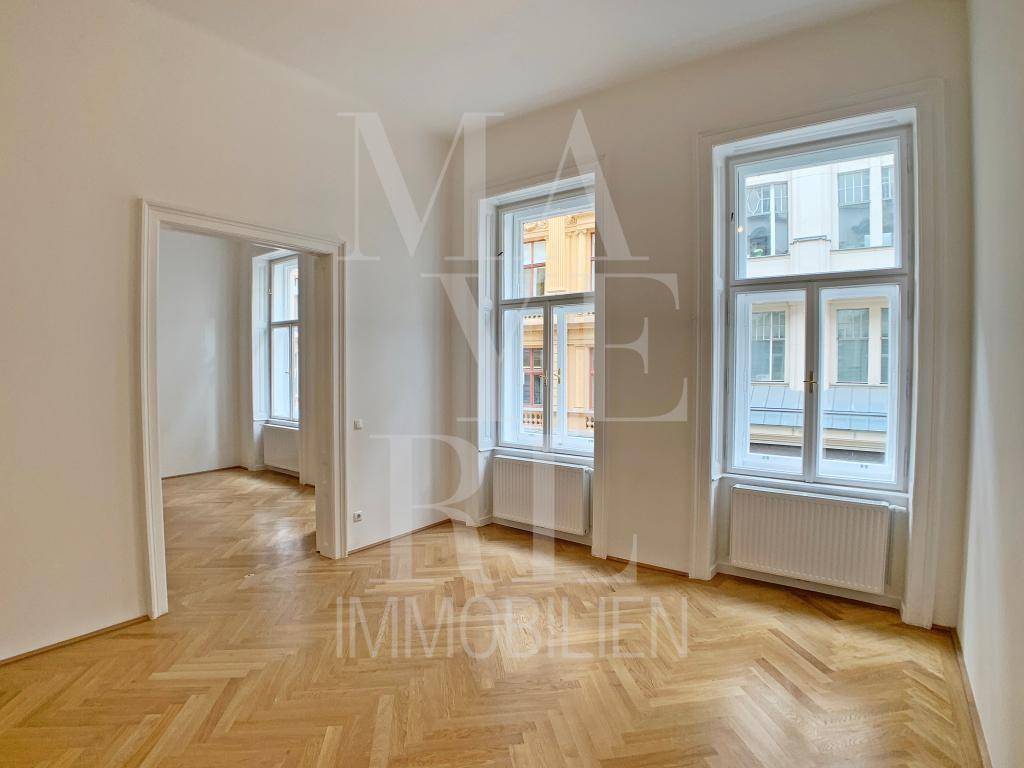 Generalsanierte Altbauwohnung mit Klimaanlage in repräsentativem Haus Nähe Stephansplatz - unbefristet 1. Stock mit Lift, hochwertige Ausstattung RAUMAUFTEILUNG Vorraum, Wohnzimmer, Esszimmer oder drittes Schlafzimmer, 2 Schlafzimmer, Arbeitszimmer oder begehbare Garderobe mit en-suite Duschbadezimmer, sehr große Küche mit ausreichend Platz für einen Esstisch, Badezimmer mit Badewanne und Toilette, Gästetoilette AUSSTATTUNG Die Küche verfügt über alle Geräte in Markenqualität und ist mit allen Ober- und Unterkästen in hochwertiger Ausführung ausgestattet. Parkettboden, Fliesen in den Bädern, Lift, Klimaanlage, Keller auf Anfrage + das monatliche Heizkostenakonto beträgt derzeit EUR 120,- inkl. USt. öffentliche Anbindung wenige Schritte vom Stephansplatz entfernt: U-Bahn U1 und U3 (Station Stephansplatz) **----------** First letting after refurbishment, spacious apartement with air conditioning in a representative bulding close to St. Stephan´s Cathedral open-ended lease, 1st floor with elevator, high quality appliances LAYOUT hall, living room, dining room or 3rd bedroom, 2 bedrooms, study or dressing room (walk-through room) with ensuite bathroom and shower, spacious kitchen with sufficent space for a dining table, bathroom with bathtub and toilet, guest-toilet FITTINGS AND FIXTURES wooden flooring, tiled bathrooms, high ceilings, elevator, air conditioning, cellar on request + current advance down payment for heating and hot water per month EUR 120,00 including VAT. all amenities of the city center and public transport within easy reach: underground U1 and U3 (station Stephansplatz)Angaben gemäß gesetzlichem Erfordernis: Miete € 2359,04 zzgl 10% USt. Betriebskosten € 424,62 zzgl 10% USt. Umsatzsteuer € 278,36 ------------------------------------------------------------------ Gesamtbetrag € 3062,02
