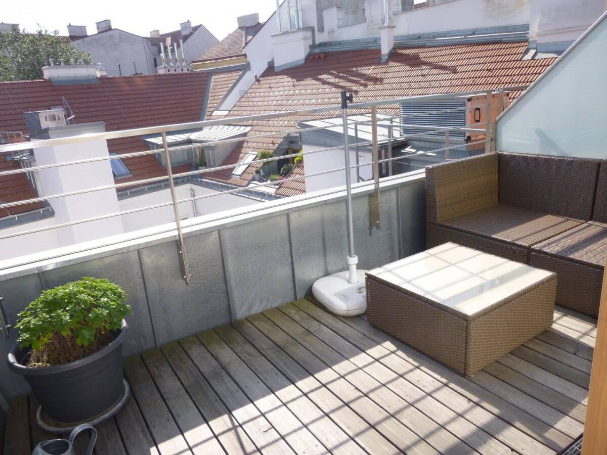 In einem repräsentativen Jahrhundertwendehaus gelangt diese im Jahr 2015 neu errichtete, schöne, hochwertig ausgebaute Wohnung mit Terrasse im Dachgeschoss zur unbefristeten Vermietung. Besonderes Augenmerk wurde auch auf einen nachhaltigen Ausbau gelegt. Zur Nutzung steht auch ein romantischer Garten zur Verfügung. Raumaufteilung: 1. Ebene: • Wohnküche ca. 24 m² und Aufgang auf die Galerie und Ausgang auf die • hofseitg ausgerichtete ruhig gelegene Terrasse mit ca. 6 m² • Schlafzimmer ca. 14 m² • Vorzimmer • Bad: Wanne + Waschbecken • WC Die Zimmer sind mit Parkettboden ausgelegt, die Sanitärräume verfliest. Die Heizkosten inklusive Warmwasser betragen monatlich brutto € 71,68 somit resultiert eine Gesamtmiete in der Höhe von € 1.198,95.Ausstattung: • Einbauküche • Parkettböden • modernes hochwertiges Bad • Hauszentralheizung (ökologische, nachhaltige Pelletsheizung) Infrastruktur: Die Lage des Hauses zeichnet sich durch die optimale Verkehrsanbindung und eine exzellente Infrastruktur aus. Alle Geschäfte des täglichen Bedarfs sowie Kaffeehäuser und Restaurants befinden sich in unmittelbarer Umgebung. Schulen und Kindergärten stehen ebenfalls zur Verfügung. Öffentliche Verkehrsanbindung: • U-Bahnline: 2 • Staßenbahnlinie: 2 Laut Energieausweis vom 23.1.2015 weist dieser einen Heizwärmebedarf von 54,6 kWh/m² pro Jahr auf und entspricht der Klassifizierung C. Der Gesamtenergieeffizienz-Faktor (fGEE) beträgt 0,83. Aufgrund der bereits seit 2014 geltenden EU-Richtlinien zum Fernabsatz- und Auswärtsgeschäfte-Gesetz bitten wir um Ihr Verständnis, dass wir Ihnen die Objekt-Unterlagen erst nach Ihrer Bestätigung, dass Sie unser Tätigwerden wünschen und über Ihre Rücktrittsrechte aufgeklärt wurden, zusenden können. Bevor wir Ihnen die Unterlagen zuschicken, erhalten Sie eine Mail in der Sie dies bestätigen müssen. Wir bedanken uns für Ihr Vertrauen.Wir weisen darauf hin, dass zwischen dem Vermittler und dem Auftraggeber ein wirtschaftliches Naheverhältnis besteht.Infrastruktur / EntfernungenGesundheit Arzt <500m Apotheke <500m Krankenhaus <1.000m Klinik <1.000m Kinder & Schulen Schule <500m Kindergarten <500m Universität <500m Höhere Schule <500m Nahversorgung Supermarkt <500m Bäckerei <500m Einkaufszentrum <1.500m Sonstige Bank <500m Geldautomat <500m Post <500m Polizei <500m Verkehr Bus <500m Straßenbahn <500m U-Bahn <500m Bahnhof <500m Autobahnanschluss <4.000m Angaben Entfernung Luftlinie / Quelle: OpenStreetMap