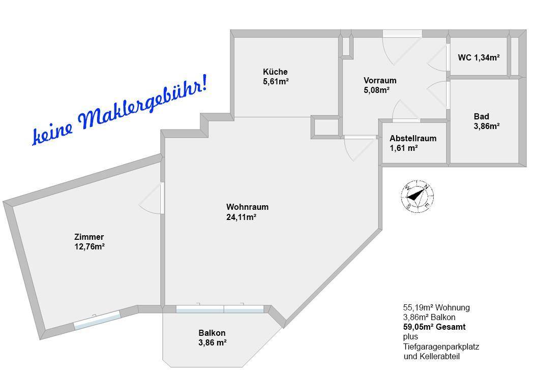 Egal ob als erste eigene Wohnung, für die Kleinstfamilie oder Alterssitz, diese wandlungsfähige Wohnung für 1 bis 2 Personen lässt sich ganz nach Ihren Vorstellungen einrichten. Ausstattung: Die Wohnung ist angenehm aufgeteilt und verfügt über zahlreiche, neuwertige Zusatzausstattungen: Milchglasfenster in der Wohnungstüre (mit Sicherheitsschloss) lassen Tageslicht in den zentralen Vorraum, vom dem aus das WC (Geberit Aqua Clean 4000!), das Badezimmer (Badewanne, Waschmaschinenanschluss), der Abstellraum sowie der Wohnbereich betreten werden. Eine moderne Einbauküche mit Geschirrspüler (Siemens, neu 2020), Gefrier-/Kühlkombination (Whirlpool) und Kochinsel mit Ceranfeld (Whirlpool, Induktion) bietet Ihnen auch beim Kochen einen offenen Blick in den Wohnraum. Der großzügige Wohnbereich und das Schlafzimmer verfügen zudem über Parkettboden, Insektenschutzgitter vor allen Fenstern inkl. Insektenschutztüre (neu 2020) sowie Klimaanlage (2 Klimainnengeräte, Split-Gerät auf dem Balkon, Daikin, neu 2019). Die Gaskombitherme von Vaillant wurde ebenfalls im Jahr 2019 erneuert, der Warmwasserspeicher im Jahr 2015. Mit dem Lift kommen Sie bequem ins Untergeschoß, in dem sich Ihr Tiefgaragenplatz, das Kellerabteil, ein Fahrradabstellraum sowie der Müllraum des Hauses befindet. Leider ist das Haus nicht barrierefrei angelegt, da sowohl das Kellergeschoss als auch der Haupteingang des Hauses nur über ein paar Stufen erreichbar sind. Größe: Die Wohnfläche beträgt laut Plan 55,19m², hinzukommen ein Balkon (3,86m²), ein Kellerabteil (ca. 6m²) sowie der Tiefgaragenplatz. Energieausweis: (vom Feb. 2012) gültig bis Feb. 22: Spezifischer Heizwärmebedarf = 76kWh/m²a (KategorieC) Die Fassade wurde im Jahr 2018 erneuert, es stehen keine großen Reparaturen am Haus an.