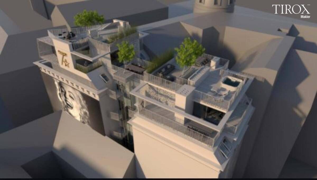 Diese außergewöhnliche Dachterrassewohnung in bester Lage im 7. Bezirk lässt Träume wahr werden.Der wunderschöne Altbaubestand wird hier durch einen einzigartigen modernen Dachausbau ergänzt und der Zeit angepasst. Die Wohnung verfügt über bis zu 3 Zimmer mit großzügig verglasten Fensterelementen und 2 Terrassen mit Fernblick über die Dächer der Stadt. Um den Ansprüchen einer solchen Immobilie gerecht zu werden, wird selbstverständlich eine Klimaanlage und hochwertigste Materialien verbaut. Im Zuge des Dachausbaus wird die schöne Fassade des prächtigen Bestandsgebäudes aus der Jahrhundertwende erneuert, sodass dieses Juwel wieder seine volle Strahlkraft zurück erhält.Die Wohnung wird über einen Lift barrierefrei zugänglich sein und teilt sich in zwei Ebenen. Im 1. DG befinden sich ein großzügiger Vorraum, ein Abstellraum mit Waschmaschinen Anschluss, zwei kleinere Schlafzimmer mit dazugehörigen kleineren Badezimmer inklusive Dusche und WC sowie einem Master-Bedroom mit großer begehbarer Garderobe und einem schönen großen Badezimmer inklusive Wanne & WC. In der 2.DG Ebene befindet sich die großzügige loftartige Wohnbereich mit Wohnzimmer sowie Wohnküche mit Zugang zu 2 Terrassen (ca. 22m² Terrasse sowie einer weiteren ca. 9m² Terrasse). Weiters befinden sich noch ein Abstellraum sowie ein WC auf der 2.DG Ebene. Auf die traumhafte Dachterrasse gelangt man direkt vom Wohnbereich und kann auf ca. 68m² die Aussicht über die Stadt genießen. Die praktische Sommerküche lädt zudem zum gemütlichen Essen und Trinken ein.AUSSTATTUNG:Whirlpool auf der DachterrasseSommerküche auf der DachterrasseHocheffiziente und leise Klimageräte (Firma Daikin) in sämtlichen Aufenthaltsräumen Fußbodenheizung in allen Räumen (Einzelraumsteuerung, Gasbrennwertzentrale)Landhausdielen aus Eiche (geölt und verklebt, Sortierung Ast frei)Keramikplatten aus Feinsteinzeug (Firma Apavisa) in Bädern, WC`s, Vorraum und KüchenbereichFenster und Fenstertüren Alu (Firma Schüco) mit 3-Scheiben-Isolierverglasung und Raffstores (elektrisch betrieben)Stufenloser Austritt auf die Terrasse mittels Hebeschiebetüren Dachflächenfenster Holz/Alu (Firma Velux) mit außenligendem Sonnenschutz, Markisette - Netz mit Fernbedienung (solar)Sicherheitstüre WK3 Videogegensprechanlage Funkalarmanlage Kellerabteil etc. RAUMAUFTEILUNG:DG1:Vorraum: 21,27 m2Bad/WC 1: 4,89m2AR: 4,41m2Zimmer 1: 16,41m2Zimmer 2: 14,53m2Zimmer 3: 17,69m2 Schrankraum: 12,16m2 Bad/WC 2: 13,02m2Gesamt: 104,38m2DG2:Wohnküche: 32,86m2 Wohnzimmer: 30,04m2 VR: 1,85m2WC: 2,39m2AR: 4,77m2 Gesamt: 71,91m2Terrassen:Terrasse 1, DG2: 9,11m2Terrasse 2, DG2: 22,32m2Dachterrasse: 67,72m2Gesamt: 99,15m2Summe Wohnfläche DG1 + DG2: 176,65m2LAGE:Neben exklusivem Wohnen genießen Sie in dieser Immobilie außerdem die zentrale Lage direkt im 7. Wiener Gemeindebezirk Neubau. Die Wohnumgebung zeigt sich gepflegt und wohnlich, erfreut sich jedoch dank abwechslungsreichen Restaurants, Bars und Clubs in Kombination mit der Nähe zum Museumsquartier besonders bei jungen Menschen großer Beliebtheit.Einkaufsmöglichkeiten finden sich im Umkreis, eine Bankfiliale steht Ihnen ebenfalls in ca. 500 m zur Verfügung. Besonderen Komfort verspricht die umliegende kulinarische Landschaft, die mit einer Auswahl verschiedenster Landesküchen sowie Cafés und Bars feinste Abwechslung für jeden Geschmack bietet.Diverse Museen sowie den Heldenplatz mit dem angrenzenden Volks- sowie Burggarten finden Sie in ca. 500 m Entfernung, das Volkstheater mit seinem hochkarätigen Spielplan liegt ebenfalls nur einen Spaziergang entfernt. An den Ufern des Donaukanals und dem Prater in ca. 4 km Entfernung kommen Naturliebhaber und Freunde der aktiven Freizeitgestaltung gleichermaßen auf ihre Kosten.Durch eine ideale Verkehrsanbindung, besteht für Sie eine optimale Anbindung an Ihre innerstädtischen Ziele sowie über die Grenzen Wiens hinaus. Die U-Bahnhaltestelle ”Volkstheater” in ca. 550 m verbindet Sie ebenfalls mit allen Hotspots der Stadt.ÖFFENTLICHE ANBINDUNG:U-Bahnlinie U2 & U3: ca. 4 minBuslinie 13A & 48A: ca. 2 minStraßenbahnline 49: direkt beim HausSONSTIGES:Alle Angaben sind ohne Gewähr und basieren ausschließlich auf Informationen, die uns vom Auftraggeber zur Verfügung gestellt wurden. Es wird keine Gewähr für die Vollständigkeit, Richtigkeit und Aktualität dieser Angaben übernommen. Irrtum und Zwischenverkauf sind ausdrücklich vorbehalten.Wir weisen Sie darauf hin, dass wir kraft bestehenden Geschäftsgebrauchs als Doppelmakler tätig sind. Auf auf ein bestehendes wirtschaftliches Naheverhältnis zu dem Verkäufer wird hinzuweisen. Es besteht jedoch keinerlei gesellschaftsrechtliche Verbindung zum Verkäufer.Die Vermittlungsprovision beträgt 3% vom Kaufpreis zzgl. 20% USt.Hinweis gemäß Energieausweisvorlagegesetz: Ein Energieausweis wurde vom Eigentümer bzw. Verkäufer, nach unserer Aufklärung über die ab 1.12.2012 geltende generelle Vorlagepflicht, sowie Aufforderung zu seiner Erstellung noch nicht vorgelegt. Daher gilt zumindest eine dem Alter und der Art des Gebäudes entsprechende Gesamtenergieeffizienz als vereinbart. Wir übernehmen keinerlei Gewähr oder Haftung für die tatsächliche Energieeffizienz der angebotenen Immobilie.Infrastruktur / EntfernungenGesundheit Arzt <500m Apotheke <500m Krankenhaus <1.500m Klinik <500m Kinder & Schulen Schule <500m Kindergarten <1.000m Universität <500m Höhere Schule <1.500m Nahversorgung Supermarkt <500m Bäckerei <500m Einkaufszentrum <500m Sonstige Bank <500m Geldautomat <500m Post <500m Polizei <500m Verkehr Bus <500m Straßenbahn <500m U-Bahn <500m Bahnhof <500m Autobahnanschluss <4.500m Angaben Entfernung Luftlinie / Quelle: OpenStreetMap