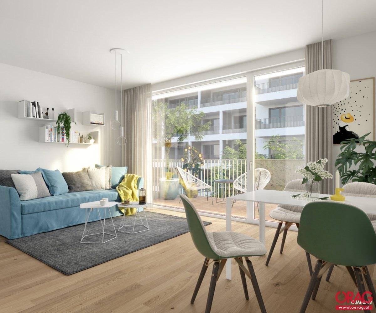 ESCHENGARTEN - Wohnen, natürlich in Liesing Zwei Häuser in Liesing fügen sich zu einem einzigartigen Wohnensemble. Wo Wohnen und Natur zusammentreffen, ist das Leben modern. Willkommen in Haus Ahorn und Haus Esche. In Liesing entsteht ein exklusives Wohnprojekt mit 92 freifinanzierten Eigentumswohnungs- bzw. Vorsorgewohnungen mit Größen von ca. 35 bis 118 m² verbunden über eine großzügige Grünanlage – dem Eschengarten. Die Esche gilt als Stadtbaum der Zukunft, sie liebt die Sonne und dient als perfekter Schattenspender in der warmen Jahreszeit. Architektur, Ökologie und hochwertiges Design prägen den Charakter des Wohnprojektes, so dass ein einzigartiger Eigenheim-Wohlfühlfaktor entstehen kann. Die Wohnung Top 1.17 erstreckt sich über eine Wohnfläche inkl. Loggia von ca. 95 m² und weist folgende Raumaufteilung auf: - Vorraum (ca. 17 m²) - Wohnküche (ca. 33 m²) - Zimmer 1 (ca. 11 m²) - Zimmer 2 (ca. 9 m²) - Zimmer 3 (ca. 9 m²) - Badezimmer (ca. 6 m²) - separates WC (ca. 2 m²) - Abstellraum (ca. 2 m²) - Loggia (ca. 7 m²) - Terrasse (ca. 3 m²) Diese Wohnung kann ebenso als Vorsorgewohnung erworben werden. Highlights: - funktionale Raumkonzepte - durchdachte Grundrisse - Freiflächen in Form von Loggien, Balkonen, Terrassen und Gärten - hauseigener Mehrzweck-/ Fitnessraum - großzügige Fensterflächen bieten viel natürliches Licht - der Eschengarten mit seiner vielfältigen Bepflanzung - Tiefgarage mit 81 Stellplätzen. Ein Stellplatz kann um € 24.000,00 erworben werden. Ausstattung: Beide Wohnhäuser punkten mit einer formschönen und erstklassigen Ausstattung. Naturholz verleiht den lichtdurchfluteten Wohnräumen eine bodenständige Note – deswegen sind hochwertige Echtholz-Parkettböden bei Haus Ahorn und Haus Esche Standard. Großzügige Fenster mit 3-fach-Isolierverglasung holen die Natur ins Haus – erholsam und nachhaltig zugleich. Rollläden im Erdgeschoß und teilweise Screen-Rollos in den oberen Geschoßen bieten sowohl hervorragenden Sichtschutz von außen als auch genug Tageslicht für eine natürliche Raumatmosphäre. Die modernen Bäder überzeugen mit einer hochwertigen Sanitärausstattung und flächenbündigen Spiegeln. Lage: Der Wiener Bezirk Liesing verfügt über eine ausgezeichnete Infrastruktur zur täglichen Versorgung und ist zugleich ein Geheimtipp für Familien: Mehrere Kindergärten, Schulen und zahlreiche Geschäfte sind fußläufig erreichbar. In der Shopping City Süd, nur wenige Autominuten entfernt, finden Sie das österreichweit größte Angebot an Shops, Entertainment und Gastronomie unter einem Dach. Gleich ums Eck liegt die Badner Bahn, die Sie in weniger als 30 Minuten ins Herz der Stadt bringt. Mit der U6 gelangen Sie direkt zum Westbahnhof, eine der wichtigsten Verkehrsdrehscheiben der Stadt. Nur fünf Minuten dauert die Fahrt mit dem Auto zum Badeparadies “100tage sommer”. Rund um den natürlichen Schwimmteich gibt es zahlreiche Möglichkeiten, die Freizeit ausgiebig zu genießen. Ein Projekt von ARE und areos. Visualisierungen: ©JAMJAM Fotos: ©MarkusSchiederPhotography Geplanter Termin Fertigstellung: Frühsommer 2021 Kontaktlose Objektbesprechungen: Wir führen Ihren Beratungstermin völlig kontaktlos und unter Einhaltung aller Vorsichtsmaßnahmen mit Ihnen durch. Auf Wunsch können wir auch Beratungstermine virtuell mit Ihnen durchführen, d.h. wir schicken Ihnen Fotos und Pläne, die wir gemeinsam im Rahmen eines Telefonats präsentieren und besprechen können. Weitere Immobilien finden Sie auf unserer Website www.oerag.at oder in der ÖRAG Immobilien App (iOS & Android).