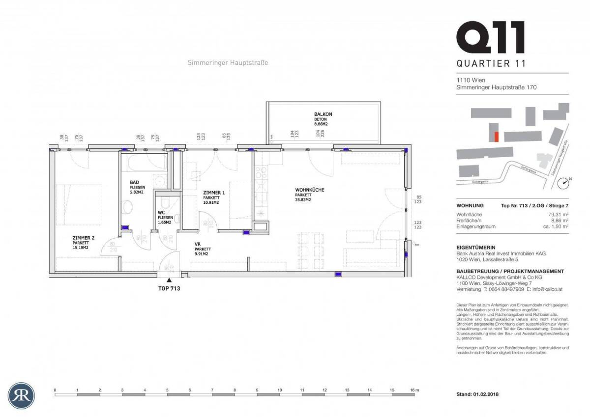 Die Wohnungen im QUARTIER 11 zeichnen sich durch eine Vielfalt an unterschiedlichen Grundrissen und Größen von 43 bis 100 m2 aus. Wählen Sie das Wohnungslayout, das am besten zu Ihnen und Ihrer Zukunftsplanung passt. Ob 1-, 2-, 3- oder 4-Zimmer-Wohnung – alle Wohnbereiche sind bis ins Detail geplant. Jede Wohnung verfügt entweder über Garten, Balkon, Loggia oder Terrasse. Wir haben alle Wohnungen mit modernsten Maßküchen inklusive Geräten, Parkettböden und alle Fenster mit Außenjalousien ausgestattet. Und das Beste ist: alle Wohnungen sind gekühlt.Detaillierte Infos über alle freien Wohnungen sowie Pläne finden Sie unter www.QUARTIER11.at.!!! Alle Innenaufnahmen sind Beispielfotos aus Wohnungen in diesem Projekt.Das Wohnareal QUARTIER 11 besteht aus 8 freistehenden Gebäuden und einem 10-geschoßigen Turm mit markanter Fassade. Großzügige Grünflächen und freundlich gestaltete Plätze verleihen diesem Wohnprojekt ein ganz besonderes Flair in Ruhelage. Die moderne Architektur kombiniert hier attraktives Design und angenehmes Wohngefühl für Ihr neues Zuhause.Das innovative Energiesystem KlimaLoop® mit seiner integrierten Deckenkühlung für alle Wohnungen setzt dabei neue Standards und sorgt für niedrige Energiekosten.Mietdauer: 10 Jahre befristet Kaution: 3 Bruttomonatsmieten Provision: 2 Monatsmieten + 20 % Ust. Garage: € 72,--/Monat (Kaution für Garage: € 220,--)Schicken Sie uns bitte eine Anfrage per Mail. Es werden nur Anfragen mit kompletter Namensnennung (Vor- und Zuname) sowie Telefonnummer beantwortet.Nach Erhalt Ihrer Anfrage übermitteln wir Ihnen das Angebot und können dann gerne eine Besichtigung vereinbaren.Bitte beachten Sie, dass bei Wohnungen, die erst frei werden, eine Besichtigung nur in Abstimmung mit dem/der derzeitigen Mieter/in stattfinden kann.Infrastruktur / EntfernungenGesundheit Arzt <2.000m Apotheke <500m Klinik <4.500m Krankenhaus <4.000m Kinder & Schulen Schule <500m Kindergarten <500m Universität <3.000m Höhere Schule <3.500m Nahversorgung Supermarkt <500m Bäckerei <1.000m Einkaufszentrum <1.500m Sonstige Bank <1.000m Geldautomat <1.000m Post <1.000m Polizei <500m Verkehr Bus <500m U-Bahn <1.000m Straßenbahn <500m Bahnhof <1.000m Autobahnanschluss <2.500m Angaben Entfernung Luftlinie / Quelle: OpenStreetMap