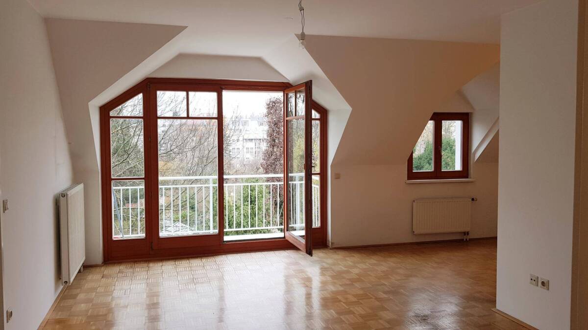 Nach Durchgang durch Haus 1 betritt man das dahinter und damit in absoluter Ruhelage gelegene Haus 2; hier ein großzügiges Stiegenhaus, von welchem aus die Wohnung über eine Steintreppe mit breiten Stufen bequem erreicht werden kann. Es steht zudem ein Personenaufzug zur Verfügung. Vorzimmer, großzügige Wohnküche, Schlafzimmer, begehbarer Kleiderschrank, Bad mit Wanne sowie Toilette mit Handwaschbecken. Im Kellergeschoß befinden sich ein Fahrrad- und Kinderwagenabstellraum und ein eigenes Kellerabteil. Optional kann ein Garagenplatz (Garage im Haus) dazugemietet werden. Die Wohnung ist mit einem schönen Parkettboden sowie Fliesen in Küche und Bad ausgestattet. Das Bad verfügt über eine Wanne und Dusche mit Regenbrause sowie über einen modernen Waschtisch mit großflächigem Spiegel. Ebenso gibt es einen Waschmaschinenanschluß. Die Komplettküche ist mit diversen Geräten ausgestattet. Es sind in allen Räumen gefällige Lampen mehr als ausreichend Steckdosen, sowie ein Telekabel-/ Satanschluss vorhanden. LAGE: In hervorragender Grünruhelage im Cottageviertel von Döbling gelangt nunmehr diese Dachgeschosswohnung mit Balkon zur Vermietung. Die Wohnung befindet sich in einem sehr gepflegten Haus an einer baumgesäumten Strasse mit einem wunderschönen Garten zur Mitbenutzung. Ein großer nach Südwesten (!) ausgerichteter Balkon verspricht Erholung und Entspannung, zudem einzigartigen Fernblick. SONSTIGES: Die Wohnung wird auf 3, nach Rücksprache ev. auf 4 Jahre befristet mit einer Verlängerungsoption vermietet, Kaution 4 Bruttomonatsmieten, KEINE Provision Kontakt unter fuerthaler@gmail.com