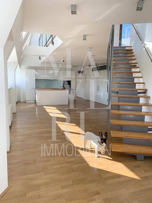 Tolle Dachterrassenwohnung mit Klimaanlage in schönem Altbau Nähe Schwedenplatz - befristet RAUMAUFTEILUNG: 1. DG: Vorraum, Wohn-Esszimmer mit offener, voll ausgestatteter Küche, Schlafzimmer mit en suite Badezimmer mit Wanne + Dusche und Toilette, 2 Abstellräume, extra Toilette mit Handwaschbecken 2. DG: Galerie mit Ausgang auf Terrasse, Schlafzimmer mit en suite Duschbadezimmer mit Toilette AUSSTATTUNG: Parkett- und Fliesenböden, Gasetagenheizung, Lift, Klimaanlage, Fahrradabstellraum Öffentliche Verkehrsanbindung U1 und U4 Schwedenplatz in 5 Geh-Minuten erreichbar Straßenbahn: 2 ** ---------- ** roof top apartment with terrace and air conditioner in a classic viennese building close to Schwedenplatz LAYOUT 1. DG: hall, living dining room with open, fully equipped kitchen, bedroom with en suite bathroom with tub + shower and toilet, 2 storerooms, separate toilet with hand wash basin 2. DG: gallery with access to terrace, bedroom with en suite bathroom with shower and toilet FITTINGS AND FIXTURES wooden flooring, tiles, gas heating, elevator, air conditioner, bicycle storage Public transport connection U1 and U4 station Schwedenplatz can be reached in 5 minutes (walking distance) Tram: 2Angaben gemäß gesetzlichem Erfordernis: Miete € 1735,29 zzgl 10% USt. Betriebskosten € 260,16 zzgl 10% USt. Umsatzsteuer € 199,55 ------------------------------------------------------------------ Gesamtbetrag € 2195