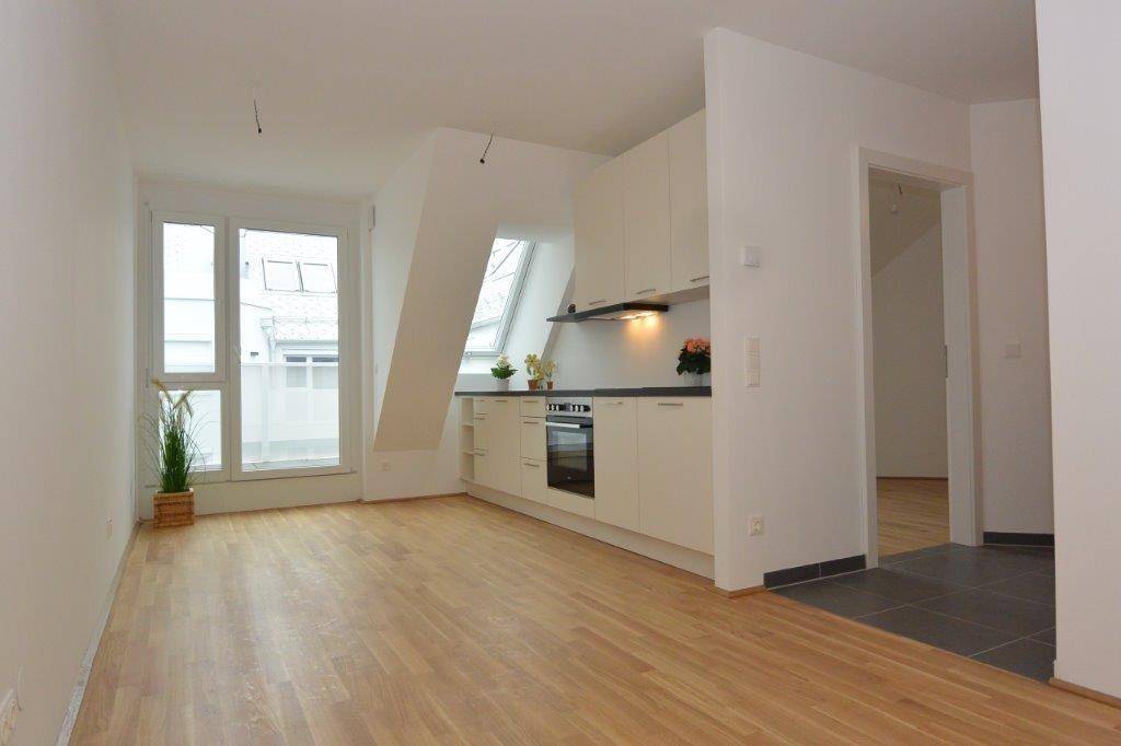 In diese ca. 43 m² große 2 Zimmer Neubauwohnung mit einem ca. 6,30m² großen süd/westseitigen Balkon, gelangt man bequem mit dem Lift. Die Wohnung befindet sich im Dachgeschoß (inkl. Schrägen) einer neu errichteten Wohnhausanlage. Durch ihre sehr günstige Lage, die Nahversorgung ist nur 30 m entfernt und durch die gute Verkehrsanbindung ist es der ideale Wohnort für ein junges Paar oder auch für ältere Personen. Diese Wohnung ist ein perfekter Einpersonenhaushalt. Sie gliedert sich in einen Vorraum, einen Abstellraum, in ein gut angelegtes Bad mit Wanne, WC und Waschmaschinenanschluss, dem Schlafzimmer, sowie dem offen gestalteten Wohn-Koch-Essbereich mit hochwertigen Einbaugeräten wie Ceranherd, Kühlschrank mit Gefrierfach und Geschirrspüler, ebenso einer großen Arbeitsfläche. Beheizt wird die Wohnung mittels einer Fußbodenheizung. Die Fenster und die Terrassentüre sind beschattet. Weiters ist die Wohnung mit Eichenparkettböden, Fliesen, Internet und TV-Anschluss ausgestattet. Ein Fahrradabstellraum und ein ca.3,6 m² großes Kellerabteil stehen ebenfalls zur Verfügung. Befristung auf 60 Monate Energieausweis HWB 29,22 kWh Kein Doppelmakler & kein Naheverhältnis Wir bitten um Ihr Verständnis, dass wir seit 13. Juni 2014 aufgrund einer neuen EU-Richtlinie (§11FAGG) Unterlagen und Besichtigungstermine für unsere Immobilien erst dann zusenden und vereinbaren können, wenn Sie uns schriftlich bestätigen, dass Sie unser sofortiges Tätigwerden wünschen und über Ihre Rücktrittsrechte aufgeklärt wurden. Sollten Sie eine Anfrage über dieses Portal absenden, bestätigen Sie uns automatisch, dass wir für Sie tätig werden sollen. Sie haben die notwendigen Formulare als Anhang (Dokument 1 und 2 pdf.) zur Ansicht. Möchten Sie kein sofortiges Tätigwerden, so vermerken Sie dies ausdrücklich bei Ihrer Anfrage zum Objekt. Dann werden wir die 14-tägige Frist abwarten und Ihnen im Anschluss die Anfrage beantworten. Sie erhalten dann das Exposé bzw. wenn gewünscht einen Vorschlag für einen Besichtigungstermin. Sollte die Immobilie nach dieser Frist nicht mehr verfügbar sein entschuldigen wir uns im Vorfeld bei Ihnen. Dieses Angebot ist unverbindlich und freibleibend. Die Angaben erfolgen auf Grund der Informationen und Unterlagen, die uns vom Eigentümer und/oder Dritten zur Verfügung gestellt werden und sind ohne Gewähr. Im Übrigen gelten die allgemeinen Geschäftsbedingungen sowie die Verordnung des BM für wirtschaftliche Angelegenheiten über Standes- und Ausübungsregeln für Immobilienmakler, BGBl 297/96 Datenschutzhinweis: Mit meiner Anfrage (schriftlich, telefonisch od. auch mündlich) erkläre ich, dass ich mit der Speicherung und Verarbeitung meiner persönlichen Daten einverstanden bin. IMMOLADIES GmbH benutzt diese Daten ausschließlich für die Bearbeitung der Anfrage und Abwicklung eines Auftrages im Rahmen der gesetzlichen Aufbewahrungspflichten. IMMOLADIES GmbH gibt diese Daten nicht an Dritte weiter, außer im Zuge eines Kaufangebotes, eines Mietangebotes und im Zuge der gesetzlichen Verpflichtung der Namhaftmachung, mit Ihrer Anfrage stimmen Sie dieser Vorgehensweise zu. Widerrufserklärung: Ich kann diese Zustimmung durch Erklärung an IMMOLADIES GmbH jederzeit widerrufen. Schriftlich oder per Mail: office@immoladies.at unter Angabe der Informationen, Name und Unterschrift des Antragstellers.Angaben gemäß gesetzlichem Erfordernis: Miete € 698 Umsatzsteuer € 0 ------------------------------------------------------------------ Gesamtbetrag € 698 ------------------------------------------------------------------ Heizwärmebedarf: 2.22 kWh/(m²a) Klasse Heizwärmebedarf: A