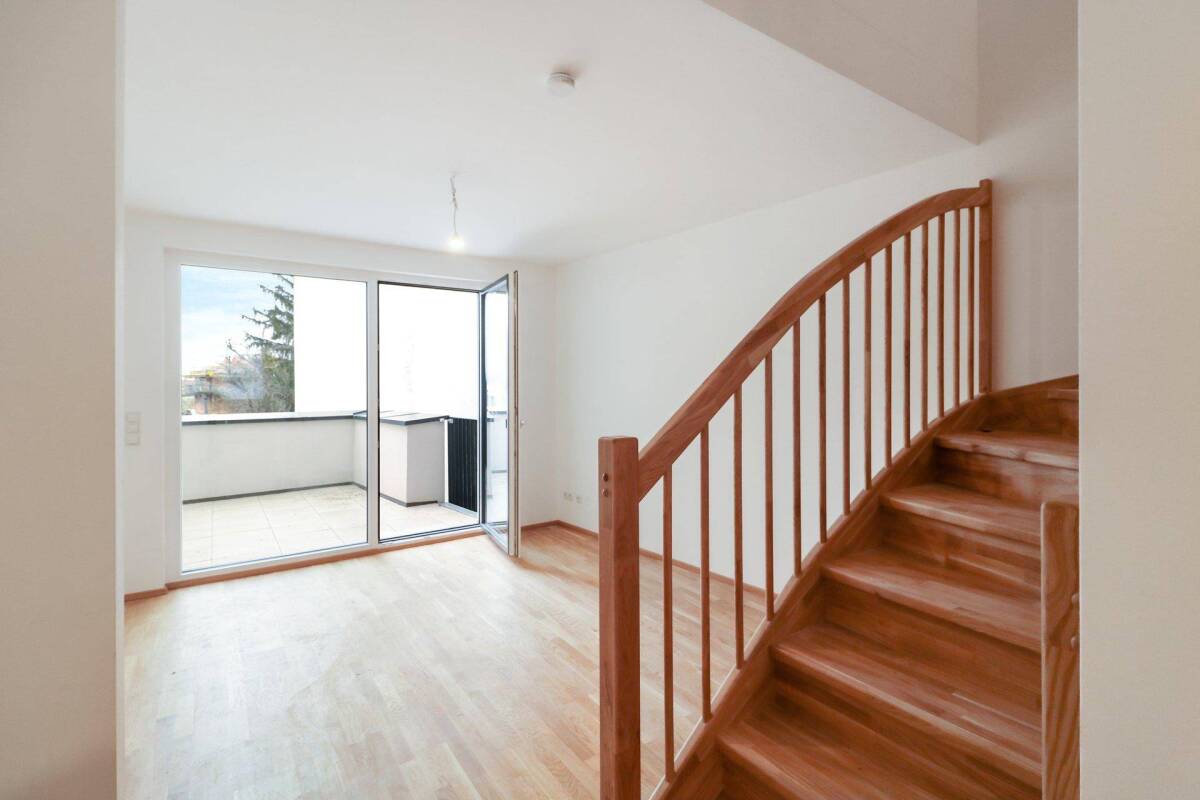 Im Herzen von Bisamberg ist eine bezaubernde kleine Wohnanlage mit zwei Architektenhäusern in höchster Qualität fertiggestellt worden. Eine besonders gemütliche Maisonette-Wohnung kann hier noch erworben werden. Über ein ansprechend gestaltetes Treppenhaus oder mit dem Lift gelangt man in das Obergeschoß. Ein freundlicher Zentralbereich heißt die Besucher in der Wohnung willkommen. Der Bereich linker Hand lädt zum wohligen Wohngenuss ein. Der Wohnbereich verschmilzt mittels der Glasfront zu einer wunderbar Einheit mit einer großen, geschützten Terrasse, die einen schönen Ausblick über das weitläufige Anwesen bis in die Ferne gewährt. Rechts vom Zentralbereich - als eigenständige Einheit gestaltet und doch mit dem Wohnraum verbunden - befindet sich der Koch- und Essbereich. Ein Abstellraum und ein Gäste-WC ergänzen die Infrastruktur im Zentralbereich. Über eine wunderschöne Holztreppe gelangt man zur Galerie im Dachgeschoss. Um diese gruppieren sich das Schlafzimmer in absoluter Ruhelage, ein weiteres Zimmer mit einem romantischen Blick auf den Bisamberg und den historischen Kirchturm, ein großzügiges Bad mit Badewanne und Dusche sowie ein weiteres, vom Bad getrenntes WC. Die Qualität der Wohnungen wird durch hochwertige Parkettböden, geschmacklich abgestimmtes Feinsteinzeug im Bad und WC, Fenster im Bad, elektrische Raffstores sowie eine Fußbodenheizung mit geprägt. Die hochwertige Bauausführung, eine innovative Haustechnik und die vorbildliche Energieeffizienz lassen auch praktisch veranlagte Herzen höher schlagen. Das Raumangebot wird durch einen Einlagerungsraum ergänzt. PKWs können auf einem Stellplatz im Innenhof abgestellt werden. Der Stellplatz kann zu einem Preis von 7.168 Euro hinzuerworben werden.Im Herzen von Bisamberg ist eine bezaubernde kleine Wohnanlage mit zwei Architektenhäusern in höchster Qualität fertiggestellt worden. Eine außerordentlich gemütliche Maisonettwohnung kann hier noch erworben werden. Über ein ansprechend gestaltetes Treppenhaus oder mit dem Lift gelangt man in das Obergeschoß. Ein freundlicher Zentralbereich heißt die Besucher in der Wohnung willkommen. Der Bereich linker Hand lädt zum wohligen Wohngenuss ein. Der Wohnbereich verschmilzt vermittels der Glasfront zu einer wunderbar Einheit mit einer großen, geschützten Terrasse, die einen schönen Ausblick über das weitläufige Anwesen bis in die Ferne gewährt. Rechts vom Zentralbereich - als eigenständige Einheit gestaltet und doch mit dem Wohnraum verbunden - befindet sich der Koch- und Essbereich. Ein Abstellraum und ein Gäste-WC ergänzen die Infrastruktur im Zentralbereich. Über eine wunderschöne Holztreppe gelangt man zur Galerie im Dachgeschoß. Um diese gruppieren sich das Schlafzimmer in absoluter Ruhelage, ein weiteres Zimmer mit einem romantischen Blick auf den Bisamberg und den historischen Kirchturm, ein großzügiges Bad mit Badewanne und Dusche sowie ein weiteres, vom Bad getrenntes WC. Die Qualität der Wohnungen wird durch hochwertige Parkettböden, geschmacklich abgestimmtes Feinsteinzeug im Bad und WC, Fenster im Bad, elektrische Raffstores sowie eine Fußbodenheizung mit geprägt. Die hochwertige Bauausführung, eine innovative Haustechnik und die vorbildliche Energieeffizienz lassen auch praktisch veranlagte Herzen höher schlagen. Das Raumangebot wird durch einen Einlagerungsraum ergänzt. PKWs können auf einem Stellplatz im Innenhof abgestellt werden. Der Stellplatz kann zu einem Preis von 7.168 Euro hinzuerworben werden.