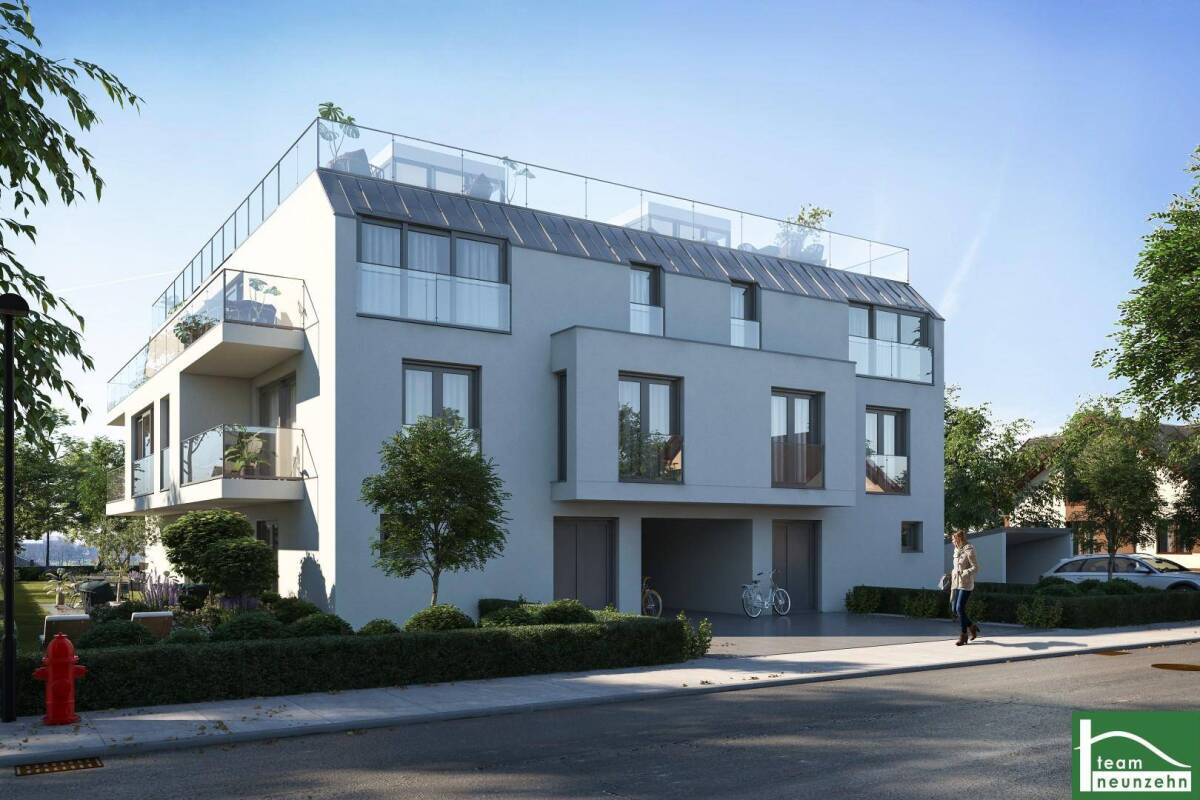 MODERNER NEUBAU IN TOLLER RUHELAGE – AN NAHE DER ALTEN DONAU –HIER HABEN SIE NOCH DIE QUAL DER WAHL - TOP GRUNDRISSE – PROVISIONSFREI!Auf diesem Baurechtsgrundstück (99 Jahre Laufzeit) entsteht ein ideal durchdachter Wohn- Neubau mit 20 Wohneinheiten, bei dem sowohl auf die Architektur als auch auf die Grundrisse im Zuge der Planung sehr viel wert gelegt wurde.Dieses Projekt eignet sich nicht nur als ideales Eigenheim, sondern auch für die perfekte Investition da die Nachfrage nach Mietwohnungen in diesen Wohnungsgrößen sowie dieser Lage sehr stark gegeben ist.In Summe werden 20 Wohnungen aufgeteilt auf zwei Gebäudekörper von ca. 32m2 – 46m2 auf 4 Geschosse errichtet, sprich Erdgeschoss – 1. Obergeschoss - 2.Obergeschoss – 1.Dachgeschoss.Alle verfügbaren Einheiten verfügen über eine großzügige Freifläche (Balkon, Terrasse oder einen Gartenbereich). Weiters werden 8 PKW-Abstellplätze in der hauseigenen Tiefgarage realisiert.Die U-Bahn-Stationen U1 Alte Donau sowie Kagran sind in unmittelbarer Nähe. In nur 1-2 Gehminuten befindet sich die Alte Donau, das bekannte Donauzentrum ist ebenso sehr nahe gelegen - in dem sich über 260 Shops, diversen Restaurants, Cafés und Bars befinden.Die Fertigstellung der Wohnanlage ist mit Ende 2021 anberaumt.Der Abverkauf erfolgt PROVISIONSFREI und zu Grunde dem Bauträgervertragsgesetz.Das Projekt zeichnet sich vorallem durch folgende Attribute aus:• ) Erstbezugs-Neubau • ) ABSOLUTE RUHELAGE• ) hochwertige Materialien welche verarbeitet werden - Fußbodenheizung• ) einer der beliebtesten Lagen Wiens – Alte Donau – Donauzentrum – Donaupark – Uno City• ) Freiflächen (Balkone, Terrassen, Gärten)• ) Hauseigene Tiefgarage• ) Kellerabteile sowie Fahrrad und KinderwagenraumWohnung Stiege 2 Top 8:Die 2-Zimmer-Wohnung mit knapp 49,9 m² Wohnfläche + ca. 9,5 m² Balkon sowie einer ca. 27,5 m² Dachterrasse liegt im Dachgeschoss und gliedert sich in folgende tolle Raumaufteilung:Vorraum ca. 6,0 m²Badezimmer mit Dusche, einer Toilette, einem Handwaschbecken und Waschmaschinenanschluss ca.4,3 m²Wohnküche ca. 25,9 m² - Zugang zum BalkonZimmer ca. 10,5 m²Zugang zur Dachterrasse ca. 27,5 m²Zudem ist ein Kellerabteil Teil der Wohnung.Ausstattungsstandard:Bei der Realisierung des Neubaus wurde großen Wert auf eine hochwertige Ausstattung sowie langlebige Materialien und top Grundrisse gelegt.Vollwärmeschutzfassade (geringer Heizwärmebedarf = geringe Heizkosten)LiftFußbodenheizung (betrieben über eine Gaszentralheizung) – die Steuerung erfolgt über ein Raumthermostat im WohnbereichKunststofffenster mit Alu-Deckschale 3-fach IsolierverglastSteierer Parkett Eiche Natur, 3,6 mm Nutzschichtgroßformatige Fliesen in den Nassbereichen - FeinsteinzeugIn den Badezimmern werden Handtuchheizkörper angebrachtAuswahl zwischen Badewanne oder Dusche – je nach BaufortschrittInnentüren WeißKellerabteileFahrradabstell- und KinderwagenraumKaufpreis:Die Wohnung kann als Anleger sowie auch als Endnutzer erworben werden.Der Endnutzerpreis beläuft sich auf 375.000,00 Euro. Der Kaufpreis für Anleger beträgt 341.000 Euro zzgl. 20% USt.Der Verkauf der Wohnungen erfolgt PROVISIONSFREI.Infrastruktur:Einer der mittlerweile begehrtesten Lagen Wiens sehr nahe der Alten Donau, dem Donaupark sowie dem Donauzentrum bietet Ihnen zahlreiche Möglichkeiten gemütliche Spaziergänge sowie entspannte Bootsfahrten zu absolvieren.Da sich dieses Grundstück direkt am Obstgartenweg befindet liegt es in absoluter Ruhelage und hat mit dem Verkehr in der Umgebung nichts am Hut.Die Nähe in die Wiener Innenstadt durch die perfekte Anbindung ist überragend – genau sowie die Anbindung an die Autobahn lässt Sie sehr rasch mit dem Auto alles erreichenTolle öffentliche VerkehrsanbindungU1 – Alte Donau sowie Kagran (ca. 900m)Buslinien:93A ArminenstraßeN25 an der Kagraner BrückeStraßenbahnlinie:25 ArminenstraßeDie Nahversorgung ist durch die unmittelbare Nähe zum Donauzentrum hervorragend. Hier stehen Ihnen von Supermärkten, Apotheken, Restaurants, Cafés, Sporteinrichtungen, Ärzte u.dgl. alles zur Verfügung.Energieausweis:Der Heizwärmebedarf beträgt x kWh/m²a, welcher der Klasse B entspricht.Dienstleistung der teamneunzehn – Gruppe für Anleger:Sie möchten nach Erwerb der Immobilie mit der Vermietung sowie den Mietabrechnungen und eventuellen Fragen während des Mietverhältnisses nicht beschäftigt sein? So steht Ihnen unser Team mit einem tollen Dienstleistungskonzept für Anleger zur Verfügung. Gerne übermitteln wir Ihnen bei Bedarf die Unterlagen hierfür.Sie suchen nach einer passenden Finanzierung für dieses Objekt?Um Ihnen auch hier Zeit und Geld zu sparen, stehen wir Ihnen mit unserem hausinternen Finanzierungsservice zur Seite! Nehmen Sie Kontakt mit unseren Finanzierungsprofis auf, um sich einen Termin für ein unverbindliches und kostenloses Beratungsgespräch zu vereinbaren. Unsere Berater werden sich Ihrem Anliegen verlässlich und professionell annehmen und den Markt für Sie sondieren, sodass Sie direkt zum optimalen Kreditangebot gelangen ohne kostbare Zeit und Mühen für unzählige Banktermine aufwenden zu müssen.Für Fragen bzw. Besichtigungen steht Ihnen Herr Rene Felix sehr gerne unter 0699 110 93 900 zur Verfügung."Leben braucht Raum" teamneunzehn.at Immobilienmanagement GmbH & Co KG www.teamneunzehn.atWir weisen ausdrücklich auf unser wirtschaftliches Naheverhältnis mit dem Abgeber/der Abgeberin hin! Irrtum und Änderungen vorbehalten! Die angeführten Bilder sind Visualisierungen. Abänderungen zur tatsächlichen Ausführung können resultieren. Die auf den Bildern ersichtlichen Einrichtungsgegenstände und Accessoires werden nicht mitverkauft.SuchkundenbetreuungWir wissen, dass die Suche nach der perfekten Immobilie manchmal eine etwas Längere sein kann. Durch unsere professionelle und persönliche Suchkundebetreuung gelangen Sie schneller und bequemer ans Ziel.Sorgenfrei vermieten – Rundum-Service
