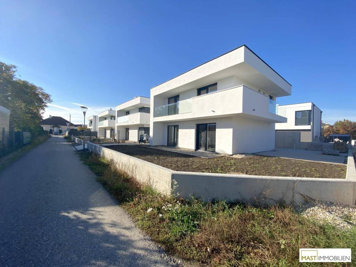 In derzeit beliebtester Siedlung in Strasshof an der Nordbahn wurden auf zwei angrenzenden Grundstücken vier Einfamilienhäuser errichtet.Es gibt zwei Haustypen, die sich in der Aufteilung unterscheiden:Einfamilienhaus auf EckgrundstückEinfamilienhaus innenDie exklusiv ausgestatteten Einfamilienhäuser verfügen über Wohnflächen von 104 m2, dazu jeweils einen Keller mit rund 53 m2, jeweils 2 KFZ-Stellplätze in Form von Parkplätzen sowie anteilige Grundstücke mit rund 300 m2.Die hohen Qualitätsansprüche spiegeln sich in der Bauweise und Ausstattung der Häuser wider:Ziegelmassiv-Bauweise, auch Innenwände!VollwärmeschutzfassadeKunststoff-/Alufenster mit 3-fach-Isolierverglasungelektrische Außenrollläden sowie integrierte InsektenschutzgitterLuftwärmepumpe von VaillantFußbodenheizung in allen Etagen (auch KG!)Photovoltaik-Anlage (von Vaillant)Pflasterung von PKW-Abstellplatz und Eingangsbereichhochwertige TerrassenplattenDoppelstabgitterzäunezahlreiche LeerverrohrungenTV-Anschluss in jedem Zimmer, auch im Kellerund Vieles mehr ...Die Häuser befinden sich derzeit noch in Bau. Das Angebot bezieht sich auf den belagsfertigen Zustand. Die Möglichkeit einer schlüsselfertigen Ausführung ist gegeben.Wir weisen darauf hin, dass zum Verkäufer ein wirtschaftliches Naheverhältnis besteht. Wir weisen hiermit auf unsere Eigenschaft als Doppelmakler gem. § 17 Maklergesetz hin.LageDie Marktgemeinde Strasshof an der Nordbahn befindet sich nur 10 km von Wien entfernt und verfügt über eine ausgezeichnete Infrastruktur. Schulen, Ärzte, Kindergärten, diverse Einkaufsmöglichkeiten etc. sind in nur wenigen Minuten erreichbar.Innerhalb von Strasshof genießt dieses Haus absolute Bestlage. Die Siedlung ist sehr familienfreundlich. In 3 Gehminuten Entfernung befindet sich ein großer Generationenspielplatz mit Spiel- und Turngeräten für Kinder und Erwachsene.Aufgrund der verkehrsgünstigen Lage ist die Stadtgrenze von Wien ist mit dem Auto in nur 10 Minuten erreichbar.Nach Fertigstellung des Schnellstraßenprojekts S8 (Marchfeld Schnellstraße) wird Strasshof über einen direkten Schnellstraßenanschluss verfügen. (Fertigstellung laut ASFINAG derzeit geplant bis 2022).Öffentliche Verkehrsanbindung:Der Bahnhof Strasshof ist nur 1,2 km (15 Gehminuten) entfernt und bietet ausreichend Parkmöglichkeiten und ist damit für Pendler bestens geeignet.Mit der Schnellbahnlinie S1 (Strasshof - ... -Deutsch-Wagram - ... - Leopoldau U1 - ... - Floridsdorf U6 - ... - Praterstern U2 - ... - Landstraße U3) ist jede U-Bahn in wenigen Minuten erreichbar.Weiteres halten an diesem Bahnhof zahlreiche weitere Schnellzüge.Die Schulen innerhalb von Strasshof sowie die Schulen in Nachbarortschaften (Gymnasium, BHAK/BHAS, Polytechnische Lehranstalt etc.) sind bequem mit Schulbussen erreichbar.Infrastruktur / EntfernungenGesundheit Arzt <1.000m Apotheke <1.000m Klinik <8.500m Kinder & Schulen Kindergarten <500m Schule <1.000m Nahversorgung Supermarkt <1.000m Bäckerei <1.000m Sonstige Bank <1.000m Geldautomat <1.000m Post <1.000m Polizei <5.000m Verkehr Bus <1.000m Bahnhof <1.000m Autobahnanschluss <9.000m Angaben Entfernung Luftlinie / Quelle: OpenStreetMap