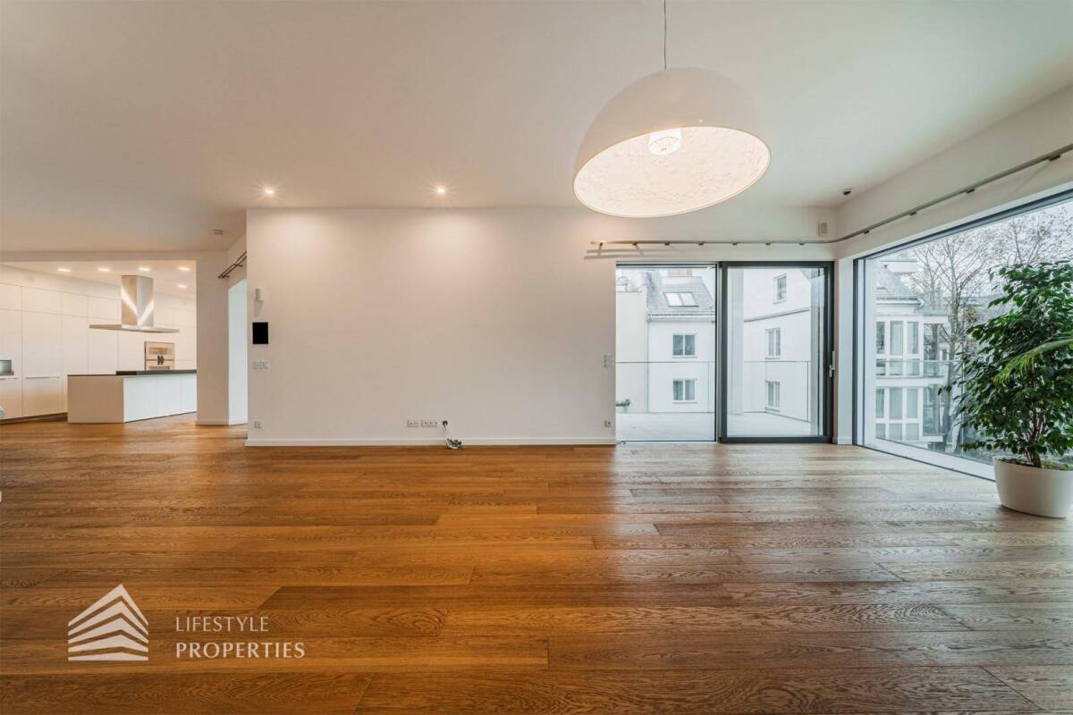 Zum Verkauf gelangt eine hochwertige und exklusive 180 m² große Eigentums-Etagenwohnung in einem vollsanierten Gründerzeithaus und hervorragender Lage. Das Schloss Belvedere, der Hauptbahnhof Wien und die Karlskirche sind in wenigen Minuten zu Fuß erreichbar.Das Gebäude wurde 2016 totalsaniert und vertikal erweitert. Im Erdgeschoss befinden sich die ebenerdige Tiefgarage, ein großzügiger Eingangsbereich, sowie allgemeine Nutzräume (Abfallraum, Raum für Kinderwagen, Fahrradraum). Im Untergeschoss befindet sich die Haustechnik sowie großzügige Kellerabteile für alle Parteien. Insgesamt wird das Gebäude von nur 4 Parteien geteilt, denn auf jedem Stock befindet sich nur eine exkluxive Wohnung. Dies führt zu einer sehr privaten Atmosphäre und hoher Verfügbarkeit aller Anlagen. Jede Ebene ist lifterschlossen. Ein großzügiges Treppenhaus dient als Alternativzugang und Fluchtweg. Die Wohnung befindet sich exklusiv im 3. Obergeschoss. Die Räumlichkeiten bestehen aus einem großen Wohnraum mit Sicht auf die Bäume im Innenhof, drei Schlafzimmern, zwei Badezimmern, einer Gästetoilette und einem ca. 32 m² großen Balkon. Außerdem stehen Ihnen ein ca. 22 m² großer Kellerabteil und zwei Stapelparkplätze in der ebenerdigen Garage zur Verfügung. Die Wohnung ist zudem mit der neuesten verfügbaren Technik ausgerüstet. Die Raumhöhe von ca. 3,20 m mit überhohen Türen verschafft dieser Wohnung trotz des modernen Designs einen klassischen und eleganten Esprit. Die topmoderne Bulthaup-Küche mit spitzenklassiger Gaggenau-Küchentechnik runden das luxuriöse Ambiente dieser außergewöhnlichen und repräsentativen Wohnung ab. Das Farbkonzept der Wohnung ist konsequent durchgängig und macht in Kombination mit den verwendeten Materialien das Innendesign besonders edel.Diese Wohnung verfügt über viele Besonderheiten. Eine davon sind die bis zum Boden verglasten Panoramafenster des Wohnbereichs, die einen Blick auf den weiten Innenhof mit einem alten und imposanten Baumbestand freigeben. Auch der elegante Kamin im Wohnbereich ist sehr beeindruckend. Ein weiteres Highlight ist die hochmoderne und luxuriöse Ausstattung der Wohnung.Ausstattung Multimedia: • IP-Verkabelung der gesamten Wohnung• Apple kompatible Lautsprecher in allen Räumen (inkl. Badezimmer) in den Decken• Bose Surroundsystem für Video/TV im Wohnzimmer• In Wand eingebautes iPad für Musik- und WohnungssteuerungSicherheit: • Massive Sicherheitstür mit Elektroschloss und manuellem Spion• Türklingel wird mit Video und Gegensprechfunktion lokal und remote geschaltet• Biometrische Öffnung der Haustüre und Wohnungstüre (keyless Fingerprint)• Gesamtes Haus ist konzeptionell unter Dauerverschluss• Alarmanlage mit IP-Fernalarmierung• Alle Räume (ohne WC/Bäder) sind videoüberwacht (inkl. Audio) und aufgezeichnet• Aufnahmebereich der Kameras ist fernsteuerbar• Elektrische Außenjalousien in allen Raumen werden bei Wind automatisch eingefahren• Safe einbetoniert und versteckt verbaut• Rauchmelder in allen Schlafräumen• FeuerlöscherHaustechnik: • Bodenheizung im Winter / Deckenkühlung im Sommer• Warmwasseraufbereitung pro Partei• Loxone Wohnungsmanagement inkl. kompletter Fernbedienung von Klima, Licht, Musik, Beschattung, Alarm, Zutritt, Überwachung und Technik• Alle Jalousien sind elektrisch und windüberwacht• Gesamte Wohnungssteuerung ist KNX-basiert und individuell programmierbar• Alle Fenster sind von Josko und mit Fliegengittern versehenWohnküche (94 m²): • Raumhöhe circa 3,20 m• Überhöhe Türen 2,40 m von Josko• Panoramaverglasung Richtung Baumanlagen im Innenhof von Josko• 3 Zugänge zu Balkon (2 Schiebetüren, 1 Dreh-/Kipptüre) von Josko• Bodenparkett in Bernstein-Eiche gebürstet von Haro• Offener Kamin mit zweiseitiger Schiebeverglasung; Granitabdeckungen in Nero Assoluto• Vertikales Kaminholz-Depot• Eingebaute LED-Spots dimmbar• Im Küchenbereich eingebaute LED-Spots dimmbar in Übergröße. Raumhöhe 3,00 m• Bacher Esstisch mit schwebender Masslederbank• Zwei Flos Skygarden Lüster dimmbar über EsstischAusstattung Kücheneinrichtung: • Luxusküche von Bulthaup (Planung und Ausführung)• Gesamtausführung in weiß mit großzügiger Kochinsel (320cm x 110 cm)• Abdeckplatte Kochinsel in Granit Nero Assoluto• Bodenplatte im Kochbereich in Parkett eingelegt Granit Nero Assoluto• Armatur von Dornbracht• Gaggenau Kühlschrank volle Einbauhöhe 90 cm Breite• Gaggenau Gefrierschrank volle Einbauhöhe 45 cm Breite mit Eismaschine und Eiswasser• Gaggenau Weinschrank volle Einbauhöhe 45 cm Breite und Doppelzone• Gaggenau Backofen in Überbreite 90 cm• Gaggenau Dampfgarer in Überbreite 90 cm• Gaggenau Geschirrspüler hochgestellt für einfachen Zugang• Gaggenau Induktionsherd mit automatischer Pfannenerkennung• Klassische Dunstabzugshaube von Bulthaup• Bar auf voller Länge der Kochinsel• 4 Barhocker von Rolf BenzAusstattung Entrée (5 m²): • Granitsteinplatte Nero Assoluto in Parkett eingelegt• Maßgefertigte Schrank-/Sitzplatzkombination inkl. Garderobe• Übergroße LED-Spots in Decke eingelassen• Glaswand mit Glas-Schiebetür zu WohnbereichVorraum Schlafbereich (9,5 m²): • Akustischer und räumlicher Trennbereich zwischen Schlafzone und Wohnzone• Eingelassene LED-Spots in ÜbergrößeToilette Gäste (2 m²):• Geberit WC mit automatischer Geruchsentlüftung• Spiegel mit LED-Beleuchtung• Waschbecken aus Corian• Maßgefertigter Unterbauschrank in matt-weißer Lackierung• Eingelassene LED-Spots in ÜbergrößeAusstattung Wirtschaftsraum: • Abstellkammer• Anschluss für Waschmaschine• Anschluss für Wäschetrockner• AblagefächerMaster Bedroom (21 m²): • Maßgefertigter Tischlerschrank matt-weiß Lackierung auf gesamter Raumseite• Maßgefertigte Lederwand mit Kleiderhaken• Doppelbett und doppel-Nachtkästchen in Leder von Dieter Knoll• Vorhangschienen eingestemmtAusstattung de