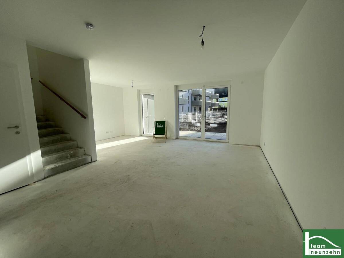 Wohnen im Park – WOHNPARK GLOGGNITZDie 6 Reihenhäuser werden mit 2 Geschossen errichtet. Jedes Reihenhaus verfügt über einen Eigengarten sowie direkten Zugang zur allgemeinen Parkanlage. Vor jedem Reihenhaus befinden sich 2 Stellplätze, davon ist 1 Stellplatz mit einem Carport überdacht.Die 2 Wohnhausanlagen mit je 4 Geschossen und je 17 Wohneinheiten verfügen alle über eine Terrasse, einen Balkon oder einen Eigengarten. Allen Eigentümern ist die Benützung der Parkanlage erlaubt.Im Kellergeschoss der Wohnhausanlage ist eine Tiefgarage (34 PKW-Stellplätze) gebaut worden. Weiters befinden sich Technik- und Einlagerungsräume sowie Fahrradabstellplätze und Kinderwagenabstellraum im Kellergeschoss der Wohnhausanlage.Der von außen zugängliche Müllraum ist im Erdgeschoss situiert.Die Fertigstellung des Projektes ist bereits erfolgt.Die Ausstattungshighlights für Sie kurz zusammengefasst: • ) Fußbodenheizung• ) Nahwärmeversorgung (Fernwärmeanschluss) • ) 3-Fach isolierverglaste Kunststofffenster • ) Eichenparkettboden • ) elektrische Außenrollos• ) hochwertige Sanitäreinrichtung • ) Sicherheitseingangstüre WK1 mit 3KS Mehrfachverriegelung • ) Kinderwagen und Fahrradabstellraum in den AllgemeinbereichenHaus 2Das Haus, welches sich auf 2 Etage erstreckt, verfügt über 4 Zimmer mit knapp 104 m² Wohnfläche zzgl. ca. 13 m² Terrasse und 47 m² Garten und gliedert sich in folgende Raumaufteilung:Erdgeschoss:Eingangsbereich / VorraumWohnküche mit angrenzendem EssbereichZugang auf Terrasse und Garten1 WC1. Obergeschoss:VorraumBadezimmer mit BadewanneSeparates WCAbstellraumSchlafzimmer 1Schlafzimmer 2Schlafzimmer 3Kaufpreis:Der Kaufpreis beläuft sich auf 309.900,-- €.Stellplatz: Der Kaufpreis beläuft sich auf 6.900,-- €.Carport:Der Kaufpreis beläuft sich auf 8.900,-- €.Der Verkauf erfolgt PROVISIONSFREI für den Käufer!Die Verkehrsanbindung glieder sich wie folgt:Sie erreichen in 400m / 5 Gehminuten mehrere Einkaufsmöglichkeiten, Ärtze, Kindergärten, Gaststätten und Kaffeehäuser. Das Landespflegeheim liegt direkt vis-a-vis ebenfalls an der Wiener Straße.Das neue Schulzentrum (Volksschule – Neue Mittelschule – Musikschule), welches 2019 fertiggestellt wurde, ist 1,0km entfernt.Ein großzügiger öffentlicher Kinderspielplatz liegt 400m entfernt.In unmittelbarer Nähe befinden sich mehrere Ausflugsziele wie Rax- Schneeberggebiet, Semmering, Schwimmbad Gloggnitz mit Schwimmteich, Schloss Gloggnitz, diverse Wander- und Spazierwege sowie Skigebiete.Bahnhof Gloggnitz – 450 mBuslinie 1734 – 450 mEnergieausweis:Der Heizwärmebedarf 33,7 kWh/m2a entspricht der Klasse BGerne steht Ihnen Herr Bernhard Koglbauer für weitere Fragen bzw. Besichtigungen unter 0664 38 22 690 zur Verfügung."Leben braucht Raum" teamneunzehn.at Immobilienmanagement GmbH & Co KG www.teamneunzehn.atWir weisen ausdrücklich auf unser wirtschaftliches Naheverhältnis mit dem Abgeber/der Abgeberin hin! Irrtum und Änderungen vorbehalten! Die angeführten Bilder sind Visualisierungen. Abänderungen zur tatsächlichen Ausführung können resultieren. Die auf den Bildern ersichtlichen Einrichtungsgegenstände und Accessoires werden nicht mitverkauft.SuchkundenbetreuungWir wissen, dass die Suche nach der perfekten Immobilie manchmal eine etwas Längere sein kann. Durch unsere professionelle und persönliche Suchkundebetreuung gelangen Sie schneller und bequemer ans Ziel.Sorgenfrei vermieten – Rundum-Servicepakete für AnlegerSie möchten nach Erwerb der Immobilie mit der Vermietung sowie den Mietabrechnungen und eventuellen Fragen während des Mietverhältnisses nicht beschäftigt sein? Wir bieten verschiedene und maßgeschneiderte Konzepte rund um unser Dienstleistungsprogramm »sorgenfrei vermieten«.Finanzierungsservice – Ihre Wunschimmobilie optimal finanziertUm Ihnen bei der Finanzierung Ihrer neuen Wohnung Zeit und Geld zu sparen, stehen Ihnen unsere Finanzierungsprofis mit Rat und Tat zur Seite. Wir führen für Sie unverbindlich und kostenlos einen unabhängigen Vergleich der unterschiedlichen Kreditkonditionen durch und verhelfen Ihnen zum optimalen Angebot.Maßgefertigte Tischlerküchen zum fairen PreisVollkommen transparent mit Fingerspitzengefühl und individuell sorgen wir für die Verwirklichung der auf Ihre Immobilie und Wünsche zugeschnittenen Maßküchen- und Möbel, welche insbesondere durch attraktive Preise bei höchster Qualität punkten könnenTRAUMHAFTES WOHNEN - perfekt für Pendler - Bahnhofsnähe – WOHNPARK GLOGGNITZInfrastruktur / EntfernungenGesundheit Arzt <500m Apotheke <1.000m Kinder & Schulen Schule <1.000m Kindergarten <1.000m Nahversorgung Supermarkt <500m Bäckerei <500m Einkaufszentrum <500m Sonstige Bank <500m Geldautomat <500m Post <1.000m Polizei <500m Verkehr Bus <500m Bahnhof <500m Autobahnanschluss <1.500m Angaben Entfernung Luftlinie / Quelle: OpenStreetMap