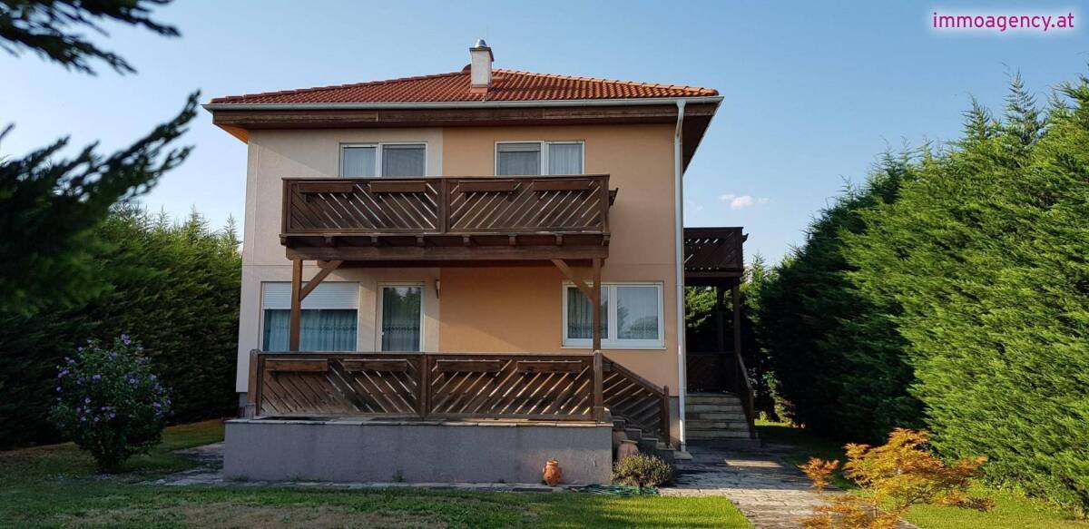 LAGE: 2804 Thersienfeld ( Nö. ) ist eine Siedlungsgegend mit vorhander Infrastuktur nördlich von Wr. Neustadt. Angrenzede Felder für Sparziergänge mit Hunden sind ausreichend vorhanden. Im Bild Bild.12 - dieser Kindergarten ist bereits fertig erstellt uns ist in sichere Entfernung.• * * Es werden 16 Bilder zur Vorstellung des Hauses im Inserat gezeigt. * * *Hinweis: Zu dem angegebenen Kaufpreis von 495.000 Euro kommt noch ein offenen Betrag einer Wohnbauförderung vom Land Nö. von derzeit ca. 25.000 Euro hinzu. Wenn die Übernahmebedingungen der WBF des Landes Nö.nicht erfüllt werden können beträgt der Kaufpreis ca. 520.000 Euro PS. Unabhängig ob sie die Übernahmebedingungen vom Land Nö. erfüllen können oder wollen, zahlen sie vom Betrag der WBF keine Maklergebühr. Zum Verkauf steht in jeder Hinsicht ein einzigartiges Objekt. Es zeichnet sich aus, dass der gesamte Grundstücksbereich aufgrund der angelegten Vegation komplett uneinsichtig ist.Die Immobilie wurde 2004 als ELK Fertigteilhaus mit einem Dichtbetonkeller erbaut und in den letzten Jahren wie Küche und Bad komplett neu erreichtet.In dieser Gegend ist der Grundwasserspiegel sehr tief bei ca. 30m - doch wollte man beim Bau des Hauses damals alles bestens herstellen.Der Kellerbereich ist komplett trocken und wird auch als Wohnbereich genutzt.T e c h n i k :Ernergieträger - GAS Heizung: Hauszentralheizung im KG, EG, OG,Warmwasseraufbereitung: Energieträger GASR a u m a u f t e i l u n g : Pläne und technische Unterlagen werden ihnen nach ihrer Anfrage bei Interesse gerne zugesandt.Kellergeschoss: KG + Fittnesarum mit Sauna+ Wirtschaftsraum - Waschmaschien und Trockner+ drei zusätzliche Räume: für Party , Gästezimmer, Aufenthaltsraum, Stauraum wie sie es verwenden möchten.Erdgschoss: EG + Vorraumbereich mit integrierter großer Einbaugarderobe mit Maßmöbeln vom Tischler+ sehr großer Wohnraum mit einem Essbereich mit Zugang zu der Terrasse+ neue DAN - Einbauküche mit allen Geräten+ Speiss im Küchenbereich separat vorhanden+ separrates WC mit HandwaschbeckenObergeschoss: OG + 4 Zimmer - davon 3 Zimmer mit Zugang zu einem Balkon+ neues Bad ( BJ 2018 ) mit Eckbadewanne, mit einer separaten Regendusche und Doppelwaschbecken,Gartenbereich: + komplett eingezäunt+ Bewässerungsanlage vorhanden+ Das Grundstück ist komplett eben und uneinsichtig.+ Es verfügt über eine Doppelgarage und davor zwei PKW Abstellplätze.Sollten sie sich für diese Immobilie näher interessieren oder Fragen vorab haben, ersuche ich sie mich zu kontaktieren.+ Telefonische Anfragen werden selbstverständlich auch gerne entgegengenommen.DI Wolfgang Höller ( IMMO AGENCY ) 2620 Neunkirchen Tel. 0660 / 1688013 Mail: hoeller@immoagency.at