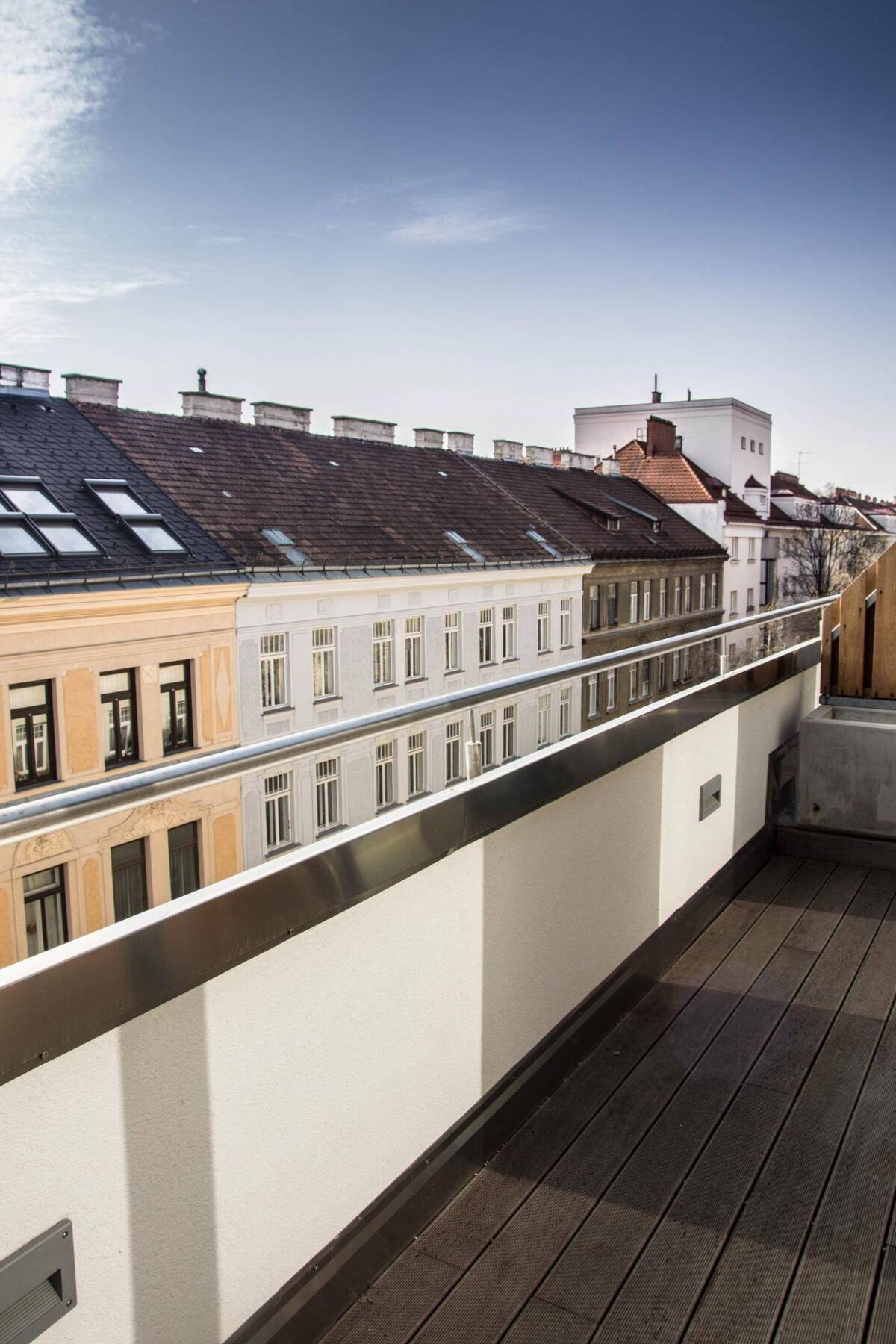Die lichtdurchflutete Dachgeschossmaissonettwohnung gliedert sich in folgende Räume: 1.Dachgeschoss: Wohnküche, Wohnraum mit Stiegenaufgang ins 2. Dachgeschoß, WC, Abstellraum und Terrasse 2. Dachgeschoss: Schlafzimmer, Bad mit Waschtischmöbel und Wanne, Vorraum, Abstellraum Die südseitige Terrasse mit Blick auf Häuser und Alleebäume ist durch eine durchgehende Glasfront vom Wohnzimmer getrennt. Diese Art der Belichtung macht die Wohnung besonders reizvoll. Die Augenrolläden der Dachflächenfenster und die Klimaanlage sind infrarot gesteuert. Die neuwertige maßgefertigte Tischlereinbauküche ist mit allen Geräten (Ceranfeld mit Dunstabzug ins Freie, Backrohr, Geschirrspüler, Mikrowellenherd, Kühlschrank und Gefrierschrank) ausgestattet und hinterlässt mit dem Farbton weiß und einer Hochglanzausführung einen eleganten Eindruck. Zusätzlich gewinnt die Wohnung durch große Dachflächenfenster in Schlafzimmer und Bad. Die Wohnung ist vollständig klimatisiert und beschattet. Im Wohnbereich ist Merbauholzparkett massiv verlegt, der sich über die Stiege und bis auf die Terrasse durchzieht. Das Geländer der Terrasse ist aus Edelstahl. Eckdaten: Wohnfläche: 72,96 m² Terrassenfläche: 7,16 m² Baujahr: 2012 Stockwerk: Dachgeschoss Lift: Personenaufzug Zustand: neuwertig Energieausweis: 43,00 (HWB) kWh/m²a Klasse B Reparaturrücklagen: 0,49€/m² Kosten: Kaufpreis: 414.952,50 € Grundbucheintragungskosten: 1,1% Grunderwerbsteuer: 3,5% Treuhandschaft: 1,5% Rendite: 2,54% Provisionsfrei Vermietet bis 31.12.2024 Nettomiete HMZ: 877,46€ Allgemeine + Aufzug BK: 131,71€ Kaution: 3.600,00€