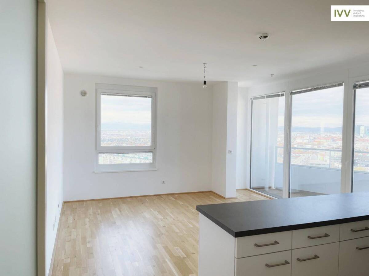 HOCH 33 ist ein einzigartiges, modernes Hochhaus, das beeindruckende Aussichten auf Wien bietet. Auf 33 Stockwerken befinden sich attraktive Mietwohnungen mit 2 – 4 Zimmern, die alle entweder über einen Balkon oder eine Loggia verfügen.Die Wohnungen sind hochwertig ausgestattet und haben praktische, gut nutzbare Grundrisse. Sie verfügen über Eichenparkettböden und moderne Einbauküchen mit allen Geräten des täglichen Bedarfs. Neben den privaten Freiflächen können die Bewohner die großartige Aussicht auch von einer Gemeinschaftsterrasse aus genießen. Darüber hinaus stehen ihnen ein Fitnessraum und mehrere Gemeinschaftsräume zur Verfügung. Außerdem können sie zu einem günstigen Preis zahlreiche Services wie etwa einen Wellnessbereich, einen Reinigungs- oder Postservice nutzen. Somit bleiben hier keine Wünsche offen.Die Wohnungen werden provisionsfrei vermittelt!Highlights:Erstbezugeinzigartige AussichtEichenparkettbodenModerne Küche inkl. EinbaugerätenJede Wohnung mit Balkon oder LoggiaFußbodenheizung ab Etage 21FitnessraumGemeinschaftsräume: Kinderspielraum, Jugendraum, Gemeinschaftsküche für VeranstaltungenGemeinschaftsterrasseConciergePost- und PaketserviceReinigungsserviceTiefgarageProvisionsfrei für den MieterONLINE-LIVE-BESICHTIGUNG MÖGLICH!Bei uns haben Sie volle Flexibilität bei Ihrer Besichtigung!Sie können Ihre Wunschwohnung entweder vor Ort oder virtuell besichtigen. Bei all unseren persönlichen Besichtigungen werden sämtliche Sicherheitsmaßnahmen eingehalten. Wünschen Sie zusätzliche Sicherheit, können Sie einen kontaktlosen Termin vereinbaren, bei dem wir Ihnen die Wohnungstüre öffnen und Sie sich diese selbstständig ansehen können. Alternativ können Sie die Wohnung über den kostenlosen Dienst Zoom mit einem virtuellen Besichtigungstermin besichtigen.--> HIER GEHT ES ZUM PROJEKTVIDEO!! https://youtu.be/kbmMgvGnYQ4https://youtu.be/OOvobs7wgksDie rund 78 m² großen Dreizimmerwohnungen eignen sich perfekt für Familien oder Paare, die Wert auf ein zusätzliches Arbeits- oder Gästezimmer legen. Sie verfügen über einen großen Vorraum, zwei Schlafzimmer, ein Badezimmer mit Wanne und ein separates WC. Über das Wohnzimmer mit offener Wohnküche gelangt man auf die gemütliche Loggia, die entspannende Stunden im Freien verspricht.