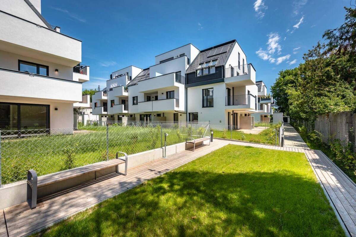 1210 Wien, Matthias- Wagner- Gasse 11,13,15PROVISIONSFREI - Wohnen für Jung und Junggebliebene in Stammersdorf - Bezugsfertig! Im Herzen von Stammersdorf, dem bekannten Wiener Heurigenort, wurde eine Wohnhausanlage aus drei Gebäuden soeben fertiggestellt.Zwischen Kellergassen und Marchfeldkanal, in wunderschöner Grünruhelage, sind 44 Eigentumswohnungen entstanden.Die Wohneinheiten bieten großzügige Außenflächen wie Gärten, Terrassen, und Balkone.Eine hauseigene Tiefgarage sowie der Fahrrad-und der Kinderwagenabstellraum runden das Projekt ab.Die Freiflächen der Gartenwohnungen wurden gärtnerisch ausgestaltet und verleihen dem Projekt mediterranes Flair - Urlaub im eigenen Heim.Infrastruktur / EntfernungenGesundheit Arzt <1.825m Apotheke <550m Klinik <5.600m Krankenhaus <925m Kinder & Schulen Schule <500m Kindergarten <625m Universität <1.650m Höhere Schule <5.100m Nahversorgung Supermarkt <325m Bäckerei <300m Einkaufszentrum <3.075m Sonstige Bank <425m Geldautomat <425m Post <2.950m Polizei <925m Verkehr Bus <225m U-Bahn <3.550m Straßenbahn <450m Bahnhof <3.325m Autobahnanschluss <3.825m Angaben Entfernung Luftlinie / Quelle: OpenStreetMap