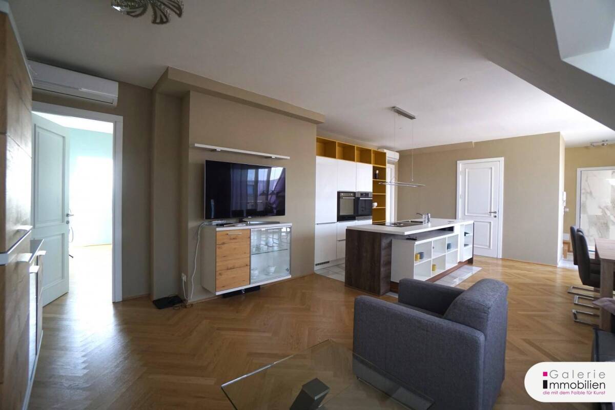 Über den Dächern von Wien - WeitblickIn der Kreuzgasse wurde in einem renovierten Altbau der Dachboden ausgebaut. Top 13 verfügt auf 128,04m² Wohnfläche auf der ersten Ebene über einen großzügigen Wohnsalon mit einer modernen Einbauküche mit allen E-Geräten und dem Zugang auf die 9m² grosse sonnige Terrasse sowie über zwei geräumige Schlafzimmer, eines davon mit en suite Marmordusche. Ebenfalls auf dieser Ebene befindet sich die Gästetoilette, in der die Waschmaschine und der Trockner montiert sind. Über die geschmackvolle Vollholztreppe gelangt man auf die zweite Ebene, die loftaftig als Wohn-/Schlafzimmer benützt werden kann. Offen zum Raum bildet das schöne Badezimmer mit freistehender Badewanne einen Blickfang. Aus allen Fenstern genießt man einen wunderschönen Blick über Wien. Ebenfalls auf dieser Ebene gibt es eine große, hofseitige Sonnenterrasse mit phantastischem Rundumblick.Die loftartige Wohnfläche mit großen Fenstern, die qualitativ hochwertige Ausstattung mit Parkettboden, Klimaanlage und Marmorbädern und die geschmackvolle Einrichtung unterstreichen den besonderen Charakter dieser Immobilie.Im Hoftrakt stehen Erstbezugsateliers - teilweise als Maisonetten - zwischen 45 und 92m² um € 761,46 bis €1.505,70 inkl. BK und 20% USt. für's Wohnen und Arbeiten zur befristeten Vermietung. Der beliebte Kutschkermarkt mit Kulinarik- und Einkaufsmöglichkeiten, Schulen, Kindergärten, Ärzte, Apotheken, öffentliche Verkehrsmittel befinden sich in unmittelbarer Nähe.Für Fragen und Besichtigungswünsche steht Ihnen Frau Dr. Nilgün de Colle unter 0664 88 62 05 73 oder n.de_colle@galerie-immobilien.at gerne zur Verfügung.Bei Abschluss eines Mietvertrages/Kaufvertrages über die hier angebotene Immobilie zwischen Ihnen und dem Vermieter/Verkäufer ist von Ihnen als Mieter/Käufer die gesetzliche Vermittlungsprovision gemäß Maklerverordnung zzgl. 20% Umsatzsteuer an uns zu entrichten. Alle Angaben wurden uns vom Vermieter/Verkäufer mitgeteilt, wir übernehmen für diese keinerlei Gewähr oder Haftung. Der Vermieter/Verkäufer wurde über die Pflichten gemäß Energieausweis-Vorlage-Gesetz 2012 aufgeklärt. Ein Energieausweis wurde vom Vermieter/Verkäufer vorgelegt. Wir übernehmen keinerlei Gewähr oder Haftung für die tatsächliche Energieeffizienz des Gebäudes bzw. der Wohnung. Es gelten unsere Allgemeinen Geschäftsbedingungen. Gerichtsstand und Erfüllungsort ist Wien. Wir verweisen auf unsere Nebenkostenübersicht Miete/Kauf.Datenschutzhinweis: Galerie Immobilien GmbH verarbeitet personenbezogene Daten nach den datenschutzrechtlichen Bestimmungen. Weitergehende Informationen finden Sie auf unserer Homepage unter https://www.galerie-immobilien.at/datenschutzerklaerung-138Wir weisen formell darauf hin, dass wir mit dem Abgeber/der Abgeberin und mit der betreffenden Hausverwaltung aufgrund einer wiederholten Geschäftstätigkeit in einem wirtschaftlichen Naheverhältnis und als Doppelmakler tätig sind.Infrastruktur / EntfernungenGesundheit Arzt <500m Apotheke <500m Krankenhaus <1.000m Klinik <1.000m Kinder & Schulen Schule <500m Kindergarten <500m Universität <1.000m Höhere Schule <1.000m Nahversorgung Supermarkt <500m Bäckerei <500m Einkaufszentrum <1.000m Sonstige Bank <500m Geldautomat <500m Post <500m Polizei <500m Verkehr Bus <500m Straßenbahn <500m U-Bahn <1.000m Bahnhof <1.000m Autobahnanschluss <3.000m Angaben Entfernung Luftlinie / Quelle: OpenStreetMap