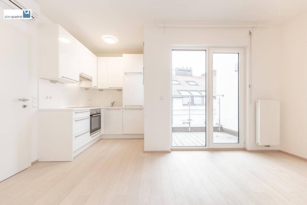 Exceptional Home … Souveräner Auftritt durch überraschende Vielfältigkeit – so präsentiert sich diese „nur“ knapp 37 Quadratmeter große Dachgeschoss-Terrassenwohnung als (Ihr zukünftiges) außergewöhnliches Zuhause! Die Großzügigkeit, die hier durchdachte Architektur auf einem ehrwürdigen Altbau geschaffen hat, auf eine Zahl (Quadratmeterangabe) zu beschränken, würde ihr nicht gerecht – diese Wohnung muss man erleben, um festzustellen, wie wohnlich Unvergleichliches sein kann. Von Anfang an fallen hier die gelungenen Proportionen und die Konzentration auf das Wesentliche ins Auge; die Offenheit die nichts Überflüssiges stört. Genau passend proportioniert wirken die einzelnen Lebensbereiche; elegant gehen Innenräume und Außenflächen ineinander über, erweitert sich das Wohnzimmer in den warmen Jahreszeiten hinaus auf die Terrasse. Sinnvolle Details – wie die Klimaanlage (die an heißen Sommertagen die Temperatur im angenehmen Bereich hält), die Außenjalousien an allen Fenstern (die bei Bedarf für entsprechende Verdunkelung und Privatsphäre sorgen), der Lift mit Gästeschaltung über die Gegensprechanlage, oder die Möglichkeit sich an die Haus-SAT-Anlage anzuschließen, runden den selbstsicheren und zeitgemäßen Auftritt der Wohnung ab. Gefühlt sind die Räume hier von mehr Glas als von Wänden eingerahmt. Mehr Fenster, mehr Licht, mehr Leben – diese Rechnung ist einfach. Denn dies schafft nicht nur optische Weite, sondern sorgt auch für eine unnachahmliche Belichtung – wer hier oben wohnt erlebt jeden Wechsel von Tag zu Nacht, jede Jahreszeit, ungleich intensiver. Der Holzboden (Parkett der Firma „Bauwerk“, Typ „Trendpark Eiche Farina“) stellt den warmen Kontrast zu den hellen, glatten Wand- und Glasflächen her. Das klassischste Material überhaupt, besonders wirksam in Szene gesetzt. Gleichsam modern und warm fügt er sich ins Geschehen ein, symbolisiert Dauer, würdevolle Distanz und Natürlichkeit. Auf seiner matten Oberfläche verteilt sich das einfallende Sonnenlicht, bringt die Maserung der einzelnen Dielen wunderbar zur Geltung und macht die Räume zu Unikaten. Wie auch immer Sie hier die beiden Lebensbereiche – das Wohn- / Esszimmer und das Schlafzimmer – durch Ihre Einrichtungsideen und die persönliche Ausgestaltung in den Mittelpunkt rücken werden, der richtigen Rahmen für ein behagliches Zuhause wird hier jedenfalls geboten. Im Wohn- / Esszimmer in einer „Nische“ untergebracht finden sich die Küchenzeile, welche durch ihre puristische Funktionalität zu gefallen vermag. Dezent in der Farbe der Oberflächen und Arbeitsplatte ist sie auf unaufgeregte Art und Weise ein unverzichtbarer Teil des täglichen Lebens (dafür sorgen, unter anderem, der Kühlschrank mit Gefrierbereich und der Geschirrspüler). Hochglänzenden Fronten, eine Arbeitsplatte und eine Rückwand in reinem Weiß treffen auf gebürstetes Metall (Herd und Relinggriffe); das tiefschwarze Ceranfeld hebt sich spiegelnd vom Untergrund ab und sorgt so für einen großartigen Kontrast. Wo die einzelnen Räume noch darauf warten, dass Sie bei der Möblierung Ihre Fantasie spielen lassen, wurde im Badezimmer schon ein wenig "vorgegriffen". Das schneeweiße Waschbecken und die gläserne Trennwand der bodenebenen Dusche perfekt zum warmen, sandfarbenen Ton der großformatigen Boden- und Wandverfliesung, welche im Waschbereich von einem großformatigen Spiegel durchbrochen wird. Dies ist kein kühler, schlichter „Nassraum“, sondern ebenso ein Ort des Wohlfühlens wie alle anderen Zimmer der Wohnung. Ergänzt werden die Räumlichkeiten noch durch eine separate Toilette (ebenso stilvoll gestaltet wie das Badezimmer und mit einem Handwaschbecken ausgestattet) und dem obligatorischen Vorraum. Wir freuen uns darauf, Ihnen Ihr neues Zuhause vorzuführen – denn von der Straße aus, vor dem im Jahre 1881 errichteten Gebäude stehend, die Architektur bewundernd, ist nicht zu erahnen, welch emotionaler Wohnraum hier im Dachgeschoss geschaffen wurde … Gerne steht Ihnen Herr Heinrich Pichler, erreichbar unter der Nummer +43 664 10 11 065, für die Vereinbarung eines Besichtigungstermins zur Verfügung!Infrastruktur / EntfernungenGesundheit Arzt <250m Apotheke <250m Krankenhaus <750m Klinik <1.000m Kinder & Schulen Schule <250m Kindergarten <250m Universität <500m Höhere Schule <1.250m Nahversorgung Supermarkt <250m Bäckerei <250m Einkaufszentrum <1.500m Sonstige Bank <500m Geldautomat <250m Post <500m Polizei <500m Verkehr Bus <250m Straßenbahn <250m U-Bahn <250m Bahnhof <250m Autobahnanschluss <3.250m Angaben Entfernung Luftlinie / Quelle: OpenStreetMap