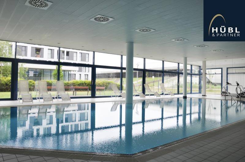 Genießen Sie den Luxus einer großen Loggia in Kombination mit dem hauseigenen Wellnessbereich mit Indoor-Pool, Sauna, Dampfbad, Fitnessraum und Liegewiese. Diese in den begrünten Innenhof ausgerichtete Wohnung besteht aus einem südseitigen Wohnzimmer mit Ausgang zur Loggia, einem Schlafzimmer, einer Küche (ebenfalls mit Ausgang zur Loggia), einem Bad mit Badewanne, einem WC, einem Abstellraum sowie einem Kellerabteil. Das Wohn- und das Schlafzimmer ist mit Parkettboden ausgestattet, die Küche, Nass- und Nebenräume mit Fliesenbelag. Die abgebildeten Möbel sind (bis auf die Küche) nicht enthalten. Die maximale Mietdauer beträgt 5 Jahre. Der Wellnessbereich (Pool mit 29°C, Fitnessraum, Sauna, Dampfbad, Liegewiese, Tischtennistisch) steht allen Bewohnern des Hauses kostenlos zur Verfügung.