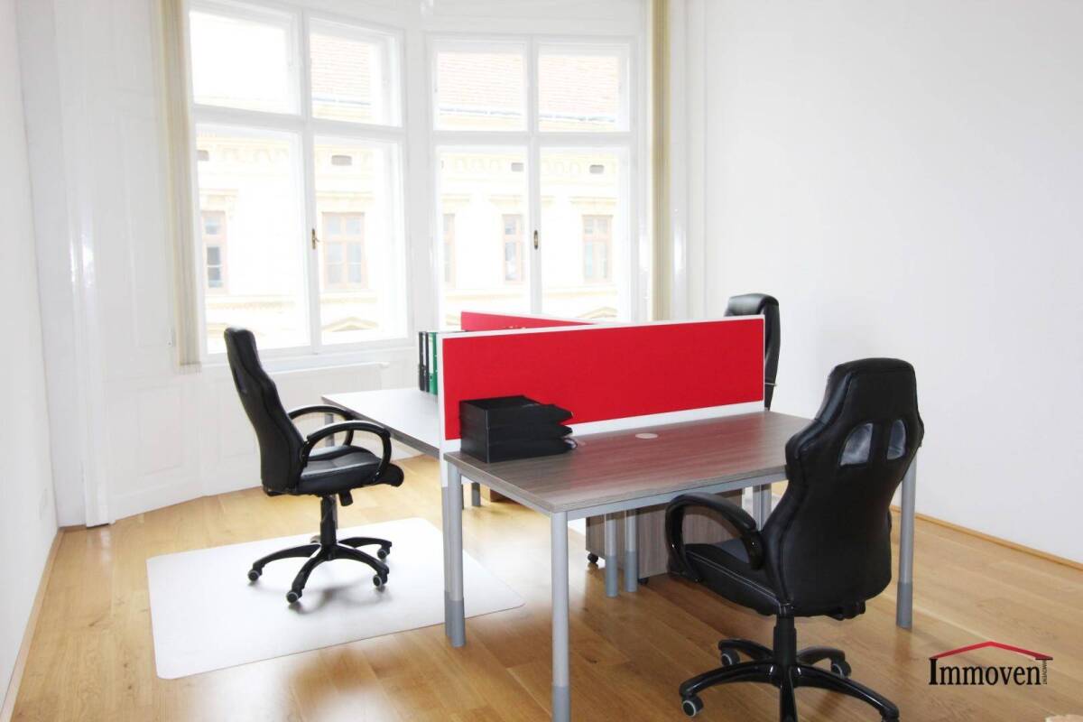 Zur Vermietung gelangt ein schöner heller Büroraum im Herzen von Wien!Das Büro befindet sich im 2. Liftstock eines Altbauhauses und weist eine Nutzfläche von ca. 25 m² auf.Der Raum ist möbliert und bietet Platz für bis zu 3 Arbeitsplätze. Schränke stehen für diverse Ablagen zur Verfügung.Für eventuelle Meetings oder Pausen kann die Küche bzw. Besprechungsraum mitbenutzt werden.Im angegebenen Mietpreis sind folgende Leistungen bereits enthalten: + Benützung des Kopiergerätes mit Scannmöglichkeit + WLAN + Strom + Heizung + BK + Benützung der Küche, sanitären Einrichtungen, EmpfangsraumDer ausgesprochen helle und lichtdurchflutete Raum sowie die großen Fenster, heben speziell den beliebten Altbau hervor.Wichtiger Hinweis: Die monatliche Gesamtbelastung von € 990,00 ist inkl. BK, jedoch exkl. USt > Endpreis € 1.188,00 Gute Lage nahe der beliebten Mariahilfer Straße Die direkte Lage in unmittelbarer Nähe der größten Einkaufsstraße Wiens - der Mariahilfer Straße. Diese befindet sich wenige Gehminuten entfernt und bietet neben zahlreichen Einkaufsmöglichkeiten auch viele beliebte Restaurants, Bars und Clubs mit kulinarischen Highlights. Für den täglichen Bedarf finden sich unzählige Nahversorger und Drogeriemärkte. Umliegende Kinos, das Museumsquartier sowie das Haus des Meeres bieten abwechslungsreiche Freizeitgestaltung. Ebenso schnell zu erreichen sind die Wiener Innenstadt sowie der berühmte Wiener Naschmarkt und seine Umgebung mit seinem besonderen Flair und dem bunten Lokalkolorit für jeden Geschmack. Auch die Anbindung an den öffentlichen Verkehr ist ausgezeichnet.Öffentliche Verkehrsmittel: • Autobuslinie: 13A, 14 A, 57A, N71 • U-Bahnlinien: U3 Station Zieglergasse, U4 Station Kettenbrückengasse, U6 Station Gumpendorferstraße _ _ _ _ _ _ _ _ _ _ _ _ _ _ _Über weitere Informationen zu diesem bzw. ähnlichen Objekten aus unserem bestehenden Portfolio informieren wir Sie sehr gerne persönlich auf Anfrage unter:Mag. Hannes Dobnikar +43 (0)664 344 73 73 h.dobnikar@immovent.atDie obigen Angaben über dieses Objekt erfolgen mit der Sorgfalt eines ordentlichen Immobilienmaklers und basieren auf den Angaben und Informationen des Eigentümers. Daher können wir keine Gewähr für die Richtigkeit der Angaben leisten.Hinweis gemäß Energieausweisvorlagegesetz: Ein Energieausweis wurde vom Eigentümer bzw. Verkäufer, nach unserer Aufklärung über die ab 1.12.2012 geltende generelle Vorlagepflicht, sowie Aufforderung zu seiner Erstellung noch nicht vorgelegt. Daher gilt zumindest eine dem Alter und der Art des Gebäudes entsprechende Gesamtenergieeffizienz als vereinbart. Wir übernehmen keinerlei Gewähr oder Haftung für die tatsächliche Energieeffizienz der angebotenen Immobilie.Infrastruktur / EntfernungenGesundheit Arzt <250m Apotheke <250m Krankenhaus <750m Klinik <500m Kinder & Schulen Schule <250m Kindergarten <500m Universität <1.000m Höhere Schule <1.500m Nahversorgung Supermarkt <250m Bäckerei <250m Einkaufszentrum <500m Sonstige Bank <250m Geldautomat <250m Post <250m Polizei <250m Verkehr Bus <250m Straßenbahn <750m U-Bahn <500m Bahnhof <500m Autobahnanschluss <4.250m Angaben Entfernung Luftlinie / Quelle: OpenStreetMap