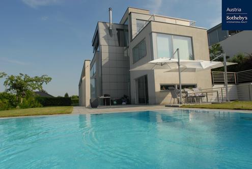 LUXUS PUR MIT VIEL PLATZ UND AUSSERGEWÖHNLICHEN ANNEHMLICHKEITEN Die Großzügigkeit, Eleganz und das moderne sowie lichtdurchflutete Design des Hauses beeindrucken schon beim Betreten des Grundstücks. Das moderne Familienanwesen wurde 2009 fertiggestellt und überzeugt nicht nur durch seinen zeitgenössischen Stil und die einzigartige Lage: Über das großzügige Entree gelangt man in den mit knapp 100 m² Fläche äußerst weitläufigen und offenen gestalteten Wohnbereich mit angrenzendem Essplatz. Viel Glas, doppelte Raumhöhen, ein traumhafter Ausblick in den sonnigen Eigengarten sowie ein modern designter Kamin sorgen für ein einmaliges Wohnerlebnis. Der ovalförmige Stiegenaufgang mit runder Verglasung dient zudem als weiterer Blickfang und sorgt für ein außergewöhnliches, architektonisches Highlight. Die knapp 23 m² große Küche ist vom Essbereich aus begehbar und wurde hochwertig mit Gaggenau-Geräten (inklusive Steak-Platte!) ausgestattet. Eine angrenzende Speis sorgt für genügend Stauraum. Die zweigeschoßige Bibliothek mit Glasboden sowie ein großzügiger Garderobenbereich mit Gäste-WC runden das Raumangebot im Erdgeschoss ab. Über die imposante Innenstiege oder die hausinterne gläserne Liftanlage gelangt man in den 1. Stock, wo sich derzeit drei Schlafzimmer, zwei Bäder sowie ein Ankleideraum und der Galeriebereich der Bibliothek befinden. Das Dachgeschoss wird derzeit als Bürofläche genutzt hier ließe sich auch ein weiterer, großzügiger Wohn- und Schlafbereich wunderbar einrichten. Ein traumhafter Ausblick auf den angrenzenden Wienerwald sowie die Stadt Wien sind Ihnen von hier gewiss! In der untersten Etage wurde ein Heimkino-Raum inklusive Theaterbühne und ein außergewöhnlicher Wellnessbereich mit Innen- und Außenpool sowie eine großzügige Garage für bis zu 6 PKW, viel Stauraum sowie weitere individuell nutzbare Räumlichkeiten realisiert. Neben einem traumhaftem Atrium-Bereich, der an die Wellness-Area (Sauna, Indoor-Pool) angrenzt, findet sich eine schöne Gäste-Suite mit eigenem Badezimmer. Barrierefrei gelangt man über den gläsernen Aufzug in sämtliche Etagen dieser außergewöhnlichen Liegenschaft. Im großzügigen Garten ist außerdem ein Außenpool zu finden. Fotos (c) Property PhotosNoch nichts gefunden Wir informieren Sie über geeignete Immobilienangebote noch vor allen anderen. Legen Sie jetzt Ihren individuellen Suchagenten unter folgendem Link an. Wir schicken Ihnen passende Immobilien exklusiv vorab zu. Suchagent anlegen - https://austria-sotheby-s-international-realty.service.immo/registrieren/deInfrastruktur / EntfernungenGesundheitArzt
