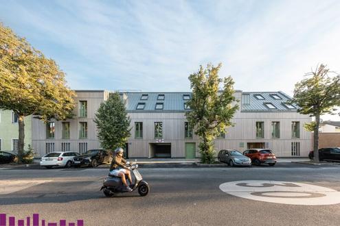 Dorf Stadt Oase Aktiv leben, entspannt wohnenDiese moderne und gut aufgeteilte 3-Zimmer-Wohnung im 1. Obergeschoss der exklusiven Wohnanlage in der Klederinger Straße 63-65 bietet eine Wohnfläche von 66,12 m². Die Wohnung ist barrierefrei und verfügt über einen Aufzug, der den Zugang besonders komfortabel macht. Wohnraumaufteilung und Ausstattung: Wohnküche: Die helle Wohnküche mit 18,94 m² bietet viel Platz für gemeinsames Kochen und gemütliches Beisammensein. Der hochwertige Parkettboden sorgt für eine warme Atmosphäre. Zimmer 1: Mit 14,89 m² bietet dieses Zimmer viel Platz für ein Schlafzimmer oder Büro und ist ebenfalls mit Parkettboden ausgestattet. Ebenso ist eine Schrank- bzw. Schreibtischnische mit 2,43 m² eingeplant. Zimmer 2: Ein weiteres großzügiges Zimmer mit 11,96 m², das vielseitig genutzt werden kann, ebenfalls mit Parkettboden. Badezimmer: Das moderne Badezimmer mit 4,85 m² ist mit Feinsteinzeug in eleganter braun-grauer Farbgebung gefliest. Abstellraum: Ein praktischer Abstellraum mit 2,49 m² bietet zusätzlichen Stauraum. Vorraum: Der Vorraum mit 8,48 m² verbindet alle Räume und ist ebenfalls mit Parkettboden ausgestattet. Freifläche: Loggia: Genießen Sie die frische Luft auf der 5,13 m² großen Loggia, die ausreichend Platz für eine gemütliche Sitzecke bietet. Die hochwertige Ausstattung, zu der elektrisch bedienbare Außenraffstores und eine moderne Fußbodenheizung gehören, sorgt für zusätzlichen Komfort. Die Wohnung ist hell und bietet durch die geschickte Raumaufteilung viel Platz und Flexibilität. Genießen Sie das angenehme Wohngefühl und die hochwertige Ausstattung dieser besonderen Immobilie. Die Kombination aus modernem Wohnkomfort, ökologischer Bauweise und barrierefreier Zugänglichkeit macht diese Wohnung zu einem perfekten Ort zum Wohlfühlen.Infrastruktur / EntfernungenGesundheitArzt