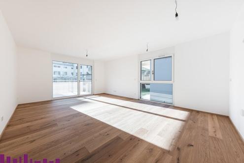 PUR Wohnen Ihr Zuhause am Rande des WienerwaldesDiese moderne 4-Zimmer-Wohnung im Obergeschoss beeindruckt mit 90,86 m² Wohnfläche und einem großzügigen Balkon (12,00 m²), der für eine helle und angenehme Wohnatmosphäre sorgt. Die barrierefreie Gestaltung und der bequeme Zugang über den Aufzug machen diese Wohnung besonders attraktiv für Familien und Paare, die viel Platz und Komfort schätzen. Die große Wohnküche (29,13 m²) ist das Herzstück der Wohnung lichtdurchflutet, geräumig und einladend. Von hier aus gelangen Sie direkt auf den Balkon, was den Wohnraum erweitert und für eine offene und freundliche Atmosphäre sorgt. Das Hauptschlafzimmer (13,84 m²) ist gut geschnitten und bietet viel Platz für Entspannung. Zwei weitere helle Zimmer (11,64 m² & 11,21 m²) können flexibel als Kinder-, Gäste- oder Arbeitszimmer genutzt werden. Ein besonderes Highlight sind die zwei Badezimmer eines mit Badewanne, das andere mit Dusche sowie ein separates Gäste-WC mit Handwaschbecken, die den Wohnkomfort zusätzlich erhöhen. Ein praktischer Abstellraum (2,82 m²) sorgt für extra Stauraum. Highlights: Sonniger Balkon (12,00 m²) für höchsten Wohnkomfort Offene & helle Wohnküche mit direktem Zugang zur Freifläche durchdachte 4-Zimmer-Aufteilung Zwei Badezimmer & separates Gäste-WC für extra Bequemlichkeit Barrierefrei & mit Aufzug bequemer Zugang zur Wohnung Privater Kellerraum & Tiefgaragenstellplatz optional verfügbar Diese Wohnung überzeugt mit Helligkeit, Großzügigkeit und einem durchdachten Raumkonzept. Ideal für alle, die viel Platz mit Außenfläche kombinieren möchten.Infrastruktur / EntfernungenGesundheitArzt
