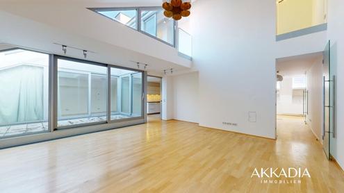Die Wohnung erstreckt sich über mehrere Ebenen im Dachgeschoss eines repräsentativen Altbau-Palais aus dem Jahr 1873 und bietet mit sieben Zimmern und drei Terrassen ein großzügiges Raumangebot. Es handelt sich um einen hochwertig ausgebauten Dachboden auf historischer Substanz, der modernes Wohnen in klassischem Rahmen ermöglicht. Die Kombination aus eleganter Bausubstanz und zeitgemäßer Ausstattung schafft vielseitig nutzbare Wohn- und Arbeitsbereiche. Besonders hervorzuheben ist der Ausblick von der Dachterrasse auf die Karlskirche und über die Dächer Wiens ein seltenes Stadtpanorama. Die Raumaufteilung ist insgesamt großzügig. Der offene Wohnbereich mit integrierter Küche führt zu einem Atrium, das für angenehmes, natürliches Licht sorgt. Drei Schlafzimmer, jeweils mit eigenem Badezimmer, sowie mehrere weitere Räume bieten flexible Nutzungsmöglichkeiten. Hochwertige Parkettböden, viele Fensterflächen und ein elektrisch bedienbarer, außenliegender Sonnenschutz sorgen für zeitgemäßen Komfort. Drei Terrassen bieten zusätzlichen Freiraum im Außenbereich. Stellplätze im Haus stehen ebenfalls zur Verfügung.Infrastruktur / EntfernungenGesundheitArzt