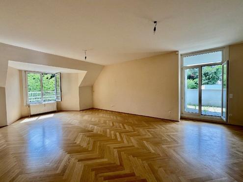 Diese großzügige 4-Zimmer-Dachgeschosswohnung mit Loggia und Grünblick befindet sich in absoluter Ruhelage in Döbling. Sie liegt im Dachgeschoss eines im Jahr 1991 errichteten Hauses und bietet eine Wohnfläche von ca. 130 m², ergänzt durch eine Loggia von 8 m² und eine Veranda von 5 m². Vom Vorraum aus gelangt man rechter Hand in die Schlafzimmer sowie in das geräumige Wohnzimmer. Auf der linken Seite des Vorraums befindet sich das WC. Das zentral gelegene Wohnzimmer besticht durch seine Helligkeit und einen Panorama Grünblick. Direkt vom Wohnzimmer aus gelangt man auf die Loggia, die über einen kleinen Abstellraum verfügt. Neben dem Wohnzimmer führt ein Zugang zu einem kleinen Arbeitszimmer. Die Küche ist gut geschnitten und durch zwei Türen zentral begehbar. Vor dem großen Küchenfenster bietet eine Nische Platz für einen kleinen Essbereich. Ein Flur führt zu einem geräumigen Badezimmer, das mit WC, Dusche, Badewanne und einem Waschmaschinenanschluss ausgestattet ist. Zusätzlich gibt es ein kleines Schlafzimmer mit Oberlichten. Das Masterbedroom überzeugt mit einer verglasten Veranda und einem Schrankraum. Helle Fischgrätparkettböden verleihen der Wohnung ein edles und gemütliches Ambiente. Ausstattung: • Sanitärausstattung mit Fliesen aus Feinsteinzeug • Echtholzparkettböden • Moderne Küche • effiziente Zentralheizung über Fernwärme • Personenaufzug • Stellplätze Lage: Die Maulbertschgasse im 19. Bezirk ist eine idyllische und ruhige Wohngegend, die besonders für Familien geeignet ist. Hier finden Sie eine Fülle von Annehmlichkeiten und Freizeitmöglichkeiten in unmittelbarer Nähe. Einkaufsmöglichkeiten und Nahversorger sind bequem erreichbar, sodass Sie alle notwendigen Besorgungen schnell und unkompliziert erledigen können. Für Feinschmecker gibt es eine Vielzahl von gastronomischen Betrieben in der Umgebung, die für jeden Geschmack etwas zu bieten haben. Egal, ob Sie internationale Küche, gemütliche Cafés oder lokale Spezialitäten bevorzugen, hier werden Sie fündig. Die Wohngegend am Rande Wiens bietet somit eine perfekte Balance zwischen Ruhe und Urbanität. Dies ist ein Ort, an dem Sie und Ihre Familie ein angenehmes und abwechslungsreiches Leben führen können, ohne auf die Vorzüge der Großstadt verzichten zu müssen. Kabel/SAT/TV: JAProvision: 3%