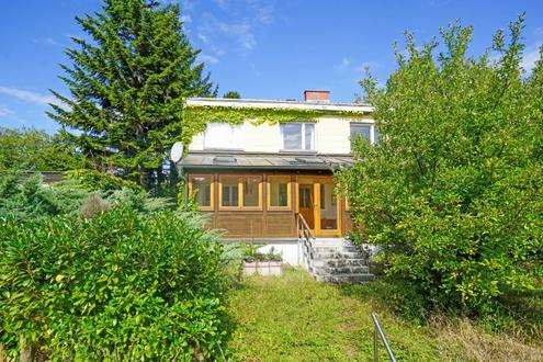 Das voll unterkellerte, alleinstehende Einfamilienhaus befindet sich in absolut ruhiger und sonniger Lage am westlichen Wolfersberg, mit toller Aussicht sowohl auf den Wolfersberg im Süden als auch auf den Satzberg im Osten. Auf ebenem Grund mit unverbaubarem Blick in einer ruhigen Wohnstraße gelegen, ist die Liegenschaft ein ganz besonderes Juwel, das absolutes Potential bietet ! Sämtliche Anschlüsse sind bereits vorhanden, mit einer Rundumsanierung lässt sich ein individuelles, traumhaftes Eigenheim schaffen. Anfang der 60er Jahre in Durisolbauweise errichtet verteilt sich die Wohnfläche von ca. 141 m² derzeit auf zwei Etagen. Der Zugang zum Haus erfolgt durch den südostseitigen Garten über einige Stufen in den ca. 27 m² großen, verglasten Wintergarten ins Erdgeschoß. Hier befinden sich, vom zentralen Vorraum mit Stiegenhaus ausgehend, eine Küche, ein Bad mit Wanne und WC sowie drei weitere Zimmer. Über eine Holztreppe gelangt man ins Obergeschoß, wo sich ein Zimmer mit angeschlossenem Schrankraum, ein Bad, ein separates WC und ein helles, freundliches Wohnzimmer mit Traumausblick befinden. Im Keller stehen eine Waschküche, eine Werkstatt und Stau- bzw. Abstellräume zur Verfügung. Ein Ausgang führt direkt in den nordwestlichen Garten, der ein wahres Idyll ist. Neben einer Gartenhütte überzeugt der charmante Naturgarten. Heizung und Warmwasseraufbereitung funktionieren mittels eines Gastherme der Firma Vaillant. In allen Wohnräumen sind Parkettböden verlegt, Keller und Sanitärräume sind verfliest. Nur wenige Gehminuten entfernt gibt es eine Haltestelle der Autobuslinie 49A mit direkter Verbindung zum Bahnhof Hütteldorf, mit dem Auto erreicht man in 5 Minuten die Schnellbahnstation Wolf in der Au mit Park & Ride Möglichkeit, von hier fährt die S-Bahn nur 12 Minuten bis zum Wiener Westbahnhof. Die Autobahnauffahrt Wien Auhof erreicht man in etwa sieben Autominuten. Wichtige Infrastruktureinrichtungen des täglichen Bedarfs wie Banken, Schulen, Kindergärten, und Supermärkte (der neue Spar auf der Hüttelbergstraße ist ca. 1 km entfernt) erreicht man in wenigen Minuten. Das Shopping Center Auhof mit einer Vielzahl an Einkaufsmöglichkeiten, einem Ärztezentrum, Gastronomiebetrieben und verschiedensten Freizeiteinrichtungen liegt nur ca. 2,5 km entfernt. Für Kinder und Sportbegeisterte liegt direkt gegenüber der Fußball- und Volleyballplatz am Viktor Kutschera Platz. Der Wienerwald bietet ausreichend Jogging- und Mountainbike-Möglichkeiten, das Hütteldorfer Bad ist mit dem Fahrrad in gut zehn Minuten erreichbar. Bei einer eventuelle Neubebauung dürfen max. 25% des Bauplatzes bebaut werden. Die bebaute Fläche darf max. 180m² in offener Bauweise betragen. Bauklasse I bis 7,5 Meter in offener Bauweise möglich. Der Vermittler ist als Doppelmakler tätig.Infrastruktur / EntfernungenGesundheitArzt