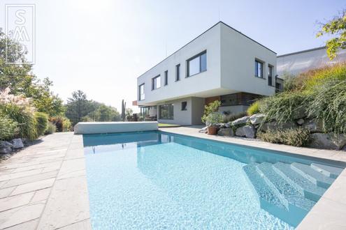 Nur ca. 3 Autominuten vom Ölberg Klosterneuburg entfernt, sucht dieses einzigartige Einfamilienhaus neue Eigentümer. Leben in der Natur mit dem Luxus der Infrastruktur in unmittelbarer Nähe ein Ort, an dem Sie sich in angenehmer Nachbarschaft zurückziehen können. Diese moderne Liegenschaft mit durchdachter nachhaltiger Technik befindet sich in einem sehr gepflegten Zustand und wurde 2017 erbaut. Das Untergeschoss ist Massivbauweise (Beton-Ziegel) sowie auch das Erdgeschoss - bis auf die Innenwände. Das Obergeschoss ist in Holzriegelbauweise ausgeführt. Sie bietet ein Zuhause mit Wohlfühlcharakter und der Möglichkeit, auch Homeoffice zu integrieren. Weiters komplettieren ein Wirtschaftsraum, eine große Werkstatt, ein Heizraum mit Holzlager sowie eine Garage mit Platz für drei große Autos das Angebot im Innenbereich der Liegenschaft. Im Outdoorbereich bietet ein beleuchteter Pool mit Gegenstromanlage angenehme Abkühlung in der warmen Jahreszeit. Ebenso besteht die Möglichkeit einer Beheizung, um den Pool auch im Winter genießen zu können. Das Wohnhaus erstreckt sich über drei Ebenen: UNTERGESCHOSS: Der Eingangsbereich ist mit einer Garderobe, die Stauraum bis zur Decke und unter der Stiege bietet, bestmöglich ausgestattet. Auch befindet sich auf dieser Ebene der Wirtschaftsraum mit Waschmaschine/Trockner (inkl. Wäscheabwurf und -auffangkorb) und einer Toilette. Vom Eingangsbereich hat man ebenfalls direkten Zugang in die Garage sowie in die dahinterliegenden Räumlichkeiten: Heizraum, Holzlager, Werkstatt und Technikraum für den Pool. In die oberen Etagen führt sowohl eine Stiege als auch ein bequemer Lift. ERDGESCHOSS: Das Erdgeschoss bietet einen sehr großzügigen und sonnendurchfluteten Wohnbereich mit Weitblick ins Grüne wie von einem Art Vogelnest aus. Der Essbereich mit offener Küche und Zugang zur großen Terrasse bzw. zum Garten verstärken das Gefühl mitten in der Natur zu wohnen. Weiters bietet ein praktischer Abstellraum viel Stauraum und eine separate Gästetoilette mit Dusche weiteren Komfort. OBERGESCHOSS: In das Obergeschoss gelangt man sowohl über die Innenstiege als auch mit dem Lift. Zwischen Erdgeschoss und Obergeschoss gibt es zusätzlich noch einen Ausgang direkt in den hinteren Teil des Gartens. Auf der obersten Wohnebene befinden sich insgesamt drei (Schlaf-)Zimmer mit jeweiligen Badezimmern en-suite. Das klassische Elternschlafzimmer hat ein größeres - nur durch eine Glaswand getrennt - angeschlossenes Badezimmer mit freistehender Wanne. Weiters ist diesem Schlafzimmer ein großzügiger Schrankraum vorgelagert. Ebenfalls ist ein praktischer Wäscheschacht in das Untergeschoss vorhanden. Das Grundstück hat eine Fläche von ca. 1.026m² und eine gesamte Wohnnutzfläche von ca. 325m² und gliedert sich nochmal wie folgt: Weitere Ausstattungsmerkmale: Küche mit allen Einbaugeräten von Miele: Induktionsherd Backrohr Dampfgarer Geschirrspüler große Dunstabzugshaube aus Edelstahl mit Beleuchtung Zusatzherd (holzbefeuert) mit Dunstabzug und Beleuchtung Amerikanischer Kühlschrank (inkl. Gefrierteil und Eiswürfelmaschine) weiterer Kühlschrank im Eingangsbereich Josko-Fenster aus Holz/Alu mit 3-facher Isolierverglasung Beschattung: Erdgeschoss: Außenlamellen Jalousien / Raffstores Obergeschoss: Rollläden Insektenschutz: in jedem Raum so montiert, dass Fenster immer geöffnet bleiben können Boden: Eiche - geklebt bzw. schwimmend verlegt (in Kinderzimmern) und Solnofener Steinboden Klimageräte (im Wohnzimmer und den Schlafzimmern) SAT-Anschlüsse LAN (2-fach) Alarmanlage Garten: Pool (8 m x 4 m / Tiefe: 1,4 m auf 2m) mit Abdeckung, Beheizung und Beleuchtung Bewässerungsanlage für Rasen und Tröpfchenbewässerung für Stauden Heizungssysteme und technische Daten - "Kleinkraftwerk": Holzheizung in Kombination mit Pelletsheizung (jeweils 34kW Leistung) Pufferspeicher: ca. 3.000 Liter mit Frischwasserzubereitung für Warmwasser 4 Heizkreise: Fußbodenheizung Radiatoren in den Schlafzimmern, Badezimmern, Handtuchheizung und Stiegenhaus Poolheizung Flächenheizung für die Hausauffahrt Kachelofen und Zusatzherd Solaranlage (ca. 15m²) für Warmwasser und Poolbeheizung PV-Anlage: ca. 12 kW Peak, Speicher ca. 27 kW, jährliche Produktionsleistung 11.000kW + 11kW Wallbox in Garage Zisterne / Hauswasserwerk: Pumpe/Wasserfilter und Speicher aus der Regenwasserzisterne (ca. 15.000 Liter für Haus und Garten) gekoppelt mit Ortswasseranschluss BWT-Enthärtungsanlage Weitere detaillierte Haus- und Ausstattungsmerkmale senden wir Ihnen gerne auf Anfrage. Die derzeitigen monatlichen Kosten von der Gemeinde (Grundsteuer, Wasser, Kanal, Abfall- und Seuchenabgabe) belaufen sich auf brutto EUR 200,--. Weitere Kosten wie z.B. Aufzugwartung, Enthärtungsanlage, etc. stellen wir Ihnen ebenfalls gerne auf Anfrage zur Verfügung. Für ein ausführliches Exposé mit detaillierterer Beschreibung und Objektadresse, ersuchen wir um eine schriftliche Anfrage mit Ihren vollständigen Daten (Vor- und Familienname, Postanschrift und Telefonnummer). Der Vermittler ist als Doppelmakler tätig.Infrastruktur / EntfernungenGesundheitArzt