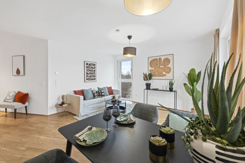 Urbanes Flair und trotzdem im Grünen wohnen: 144 nachhaltige Wohneinheiten bieten ein besonderes Lebensgefühl. Eingebettet in ein vielfältiges Begrünungskonzept und in unmittelbarer Nähe zum Naherholungsgebiet Donauinsel, bringen die Wohnungen mit Loggien, Balkonen, Terrassen oder Eigengärten buchstäblich frischen Wind in den Alltag. Das Projekt wurde im Frühjahr/Sommer 2024 fertiggestellt.Die S-Bahn-Station Jedlersdorf ist ca. 200 m entfernt. Von dort sind Sie in 15 Minuten am Knoten Praterstern mit Umsteigemöglichkeit zu den U-Bahnlinien 1 und 2, in knapp 8 Minuten am Stephansplatz. Für das Einkaufserlebnis sorgt das nahe gelegene Shopping Center Nord, das nur fünf Autominuten entfernt ist. Die Wohnhausanlage punktet mit Nahversorgern und dem Diagnosezentrum Floridsdorf in unmittelbarer Nähe. Kindergärten und Schulen sind bequem zu Fuß oder mit der Straßenbahn erreichbar. Der nahegelegene Marchfeldkanal und die Donauinsel laden zur Erholung ein.Alle Wohnungen verfügen über Gärten, Balkone, Loggien oder Terrassen. Die nachhaltige Betonkernaktivierung sorgt für Wärme im Winter und angenehmes Raumklima im Sommer. Ein Gemeinschaftsraum mit Küche, ein Fitnessraum und eine Waschküche bieten zusätzlichen Komfort. Für ausreichend Stauraum sorgen ankaufbare Einlagerungsräume sowie Abstellflächen für Kinderwägen und Fahrräder. Eine hauseigene Tiefgarage mit 95 Stellplätzen rundet das Angebot ab. Dieses Wohnprojekt vereint Lebensqualität, Nachhaltigkeit und Funktionalität.
