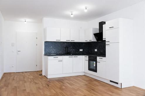 "Erstbezug: Sofort einziehen & wohlfühlen" Am Edith-Kramer-Weg, 1220 Wien erwartet Sie eine hochwertig ausgestattete 2-Zimmer-Neubauwohnung mit ca. 51m² Wohnfläche im 2. Stock eines modernen Wohnhauses ? selbstverständlich bequem erreichbar über den Lift. Die Wohnung besticht durch ihre durchdachte Raumaufteilung, den modernen Wohnkomfort und einen attraktiven Balkon mit ca. 6m². Highlights der Wohnung 2 Zimmer ? perfekt geschnitten für Singles oder Paare Erstbezug, hochwertig ausgestattet Heller Wohnbereich mit Zugang zum Balkon Separate Dusche und WC Vollausgestattete, neue Einbauküche inkl. Geschirrspüler, E-Herd, Kühlschrank Elektrische Außenjalousien Fußbodenheizung Fliesen- & Parkettböden Kunststofffenster Internet- & TV-Anschlüsse vorhanden Zusätzlich: 1 Tiefgaragenstellplatz inkludiert Kellerabteil vorhanden 2. Stock mit Lift Lage & Umgebung Der Edith-Kramer-Weg liegt in einer modernen Wohngegend in Wien-Donaustadt mit hervorragender Anbindung und ausgezeichneter Infrastruktur. Nahversorger, Freizeitmöglichkeiten und öffentliche Verkehrsmittel befinden sich in unmittelbarer Nähe. Und direkt vor Ihrer Haustür: der Hirschstettner Badeteich. Verpassen Sie nicht die Chance auf dieses besondere Wohngefühl. Mietdetails: Brutto-Mietzins ( inkl. BK) : ? 1.060,31 Kaution: 3 Bruttomietzins Befristung: 3 Jahre mit Verlängerungsoption Verfügbarkeit: ab sofort ?Es wird auf die einseitige Vertretung des Vermieters hingewiesen ? eine Doppelmakler-Tätigkeit ist ausgeschlossen.?Angaben gemäß gesetzlichem Erfordernis: Miete ?963,92 zzgl 10% USt.Umsatzsteuer ?96,39------------------------------------------------------------------Gesamtbetrag ?1060,31------------------------------------------------------------------Heizwärmebedarf:26.0 kWh/(m²a)Klasse Heizwärmebedarf:BFaktor Gesamtenergieeffizienz:0.8Klasse Faktor Gesamtenergieeffizienz:A