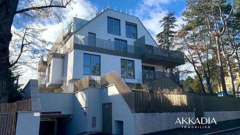 Für eine noch größere Auswahl an Immobilien besuchen Sie www.akkadia.at. Dieses außergewöhnliche Neubauprojekt verbindet auf harmonische Weise die Vorzüge urbanen Wohnens mit der Ruhe und Idylle einer grünen Premiumlage. In einer der exklusivsten Wohngegenden Wiens, nur wenige Schritte vom Pötzleinsdorfer Schlosspark entfernt, wurden 2024 insgesamt 18 hochwertig ausgestattete Wohneinheiten in zwei modernen Wohnhäusern fertiggestellt. Das Projekt steht für exzellente Wohnqualität, zeitlose Architektur und nachhaltige Bauweise. Die beiden Gebäude sind durch ein gemeinsames Untergeschoß verbunden, das großzügige Einlagerungsräume, eine Tiefgarage mit 15 PKW-Stellplätzen sowie Abstellflächen für Fahrräder und Kinderwägen bietet. Ein Aufzug ermöglicht einen barrierefreien Zugang direkt zu den Wohnebenen und sorgt so für höchsten Komfort. Ein durchdachtes Energiekonzept mit einer nachhaltigen Erdwärme-Sole-Pumpe gewährleistet über Fußbodenheizung und -kühlung ein angenehmes Raumklima das ganze Jahr über. Zusätzlich sorgen moderne Klimaanlagen für individuellen Wohnkomfort. Jede Wohneinheit verfügt über ein eigenes Kellerabteil. Ein Stellplatz in der hauseigenen Tiefgarage kann optional erworben werden. Die einladende Wohnung befindet sich im ersten Liftstock und bietet eine Wohnfläche von ca. 100 m². Vom Vorzimmer aus betreten Sie Ihr neues Zuhause, das mit einer durchdachten Raumaufteilung überzeugt. Ihnen stehen ein großzügiger Wohn-Küchenbereich, zwei Schlafzimmer mit jeweils angeschlossenem Badezimmer, eine separate Toilette sowie ein praktischer Abstellraum zur Verfügung. Ein besonderes Highlight sind die beiden Balkone, die vom Wohnbereich aus zugänglich sind. Von hier haben Sie einen traumhaften Grünblick ein perfekter Ort zum Entspannen und Genießen. Auf Grund der EU-Richtlinien zum Fernabsatz- und Auswärtsgeschäfte-Gesetz bitten wir um Ihr Verständnis, dass wir Ihnen seit 13. Juni 2014 die Objekt-Unterlagen erst nach Ihrer Bestätigung, dass Sie unser Tätigwerden wünschen und über Ihre Rücktrittsrechte aufgeklärt wurden, zusenden können. Bevor Sie die Unterlagen zugesendet bekommen, erhalten Sie eine Mail in der Sie diese beiden Punkte bestätigen müssen. Vielen Dank für Ihr Vertrauen!Infrastruktur / EntfernungenGesundheitArzt