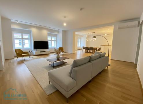 CHARMANTE WOHNUNG IM HERZEN WIENS 5. Obergeschoß mit Lift (hält in den Zwischengeschoßen), befristete Vermietung (5 Jahre) Bei der Kärntner Straße gelegen, nahe Stephansplatz - U1 und U3. RAUMAUFTEILUING: * Vorzimmer/Gang, * großes Wohn-Esszimmer mit * offener Küche, * zwei Schlafzimmer (eines mit kleinem Schrankraumbereich), * zwei Bäder (ein Bad mit Wanne, Dusche und WC; ein Duschbad), * ein WC extra, * Abstellraum mit Waschmaschinenanschluss AUSSTATTUNG: Parkettböden, komplett ausgestattete Küche, Gastherme (Heizung/Warmwasser), Kühlung, kein Kellerabteil, kein Fahrradraum! Für die Erstellung des Mietvertrags gelangt seitens der Hausverwaltung ein Betrag von EUR 349,00 brutto zur Verrechnung. Hinweis/ Disclaimer: Die Möbel sind digital und mit KI erstellt worden. VERBRAUCHSABHÄNGIGE KOSTEN WIE Z.B. * STROM UND * GAS (HEIZUNG/WARMWASSER) SIND IN DER ANGEGEBENEN GESAMTMIETE NICHT ENTHALTEN! weitere Objekte finden Sie auf unserer Homepage: www.gabriel.at BITTE ZU BEACHTEN: FÜR DIE ANMIETUNG DIESER WOHNUNG IST DIE VORLAGE EINES MONATLICHEN NETTOHAUSHALTSEINKOMMEN IN ÖSTERREICH IN HÖHE VON MINDESTENS DER DREIFACHEN GESAMTMIETE ERFORDERLICH! Dieses Objekt wird Ihnen unverbindlich und freibleibend angeboten. Oben angeführte Angaben basieren auf Informationen und Unterlagen des Eigentümers und sind unsererseits ohne Gewähr. -------------------------------------------------------------------------- CHARMING TWO BEDROOM APARTMENT IN HISTORIC BUILDING IN THE HEART OF THE CITY - CLOSE TO STEPHANSPLATZ AND KÄRNTNER STRASSE U1, U3 Stephansplatz. Entrance, living-dining-room with integrated kitchen, two bedrooms (one with walk-in-closet), one bathroom with tub, one bathroom with shower, two WC, storage. Wooden floors, fitted kitchen, air condition. Der Immobilienmakler erklärt, dass er entgegen dem in der Immobilienwirtschaft üblichen Geschäftsgebrauch des Doppelmaklers einseitig nur für den Vermieter tätig ist.Infrastruktur / EntfernungenGesundheitArzt