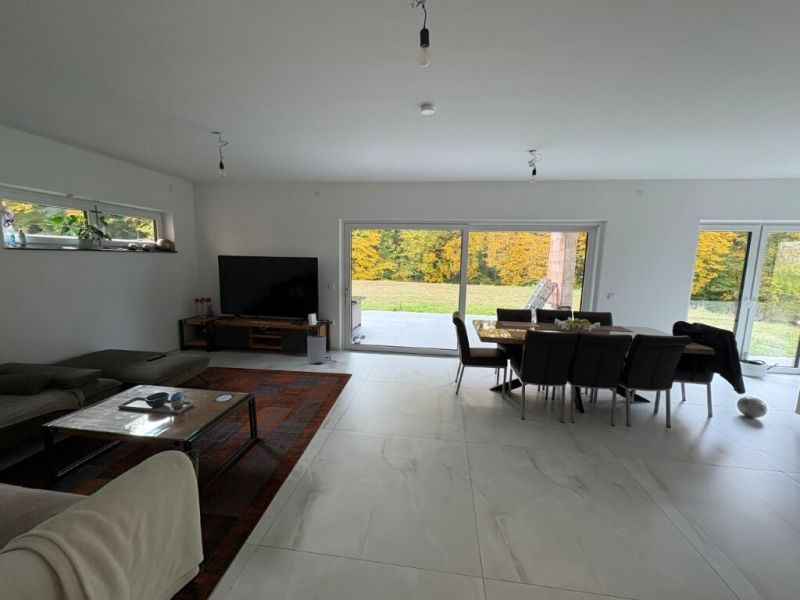 Dieses großzügige Einfamilienhaus in ruhiger Südhanglage von Allhartsberg bietet modernen Wohnkomfort, viel Platz für die ganze Familie und einen Ausblick in die grüne Umgebung. Auf einem sonnigen Grundstück mit einer Gesamtfläche von 938 m² wurde ein modernes stilvolles Zuhause geschaffen, das durch seine durchdachte Raumaufteilung und hochwertige Bauweise überzeugt. Das Haus ist bereits weitgehend fertiggestellt, lediglich die Fassade sowie einige kleinere Arbeiten im Außenbereich müssen noch abgeschlossen werden, wodurch sich die Möglichkeit ergibt, den letzten Feinschliff nach den eigenen Vorstellungen zu gestalten. Die Liegenschaft besticht durch seine sonnige Südhanglage, die eine herrliche Aussicht und viele Sonnenstunden garantiert. Terrasse und Garten bieten viel Potenzial für individuelle Gestaltung und laden zum Entspannen im Freien ein. Die moderne Architektur mit klarer Linienführung, die ruhige Wohngegend und die großzügige Doppelgarage runden das Gesamtbild ab. Das Grundstück umfasst insgesamt 938 m², wovon 229 m² bebaut sind. Die Gartenfläche beträgt 709 m² und bietet reichlich Platz für Freizeit, Erholung und individuelle Gestaltungsideen. Aufteilung: Im Untergeschoss befinden sich ein Vorraum, eine Toilette, ein Badezimmer mit Dusche, ein Gästezimmer, der großzügige Wohn- und Essbereich mit moderner Küche, ein Hauswirtschafts- bzw. Technikraum sowie ein Gartenraum mit direktem Zugang ins Freie. Das Obergeschoss, eigentlich ist es das Erdgeschoß (ebenerdiger Zugang) umfasst einen Windfang, einen Vorraum, zwei helle Kinderzimmer sowie ein Elternschlafzimmer mit Schrankraum und Zugang zur Terrasse. Weiters gibt es ein geräumiges Badezimmer sowie eine Garage mit Platz für zwei PKWs.Das Einfamilienhaus befindet sich in 3365 Allhartsberg, in der Ortschaft Südhang, einer beliebten Wohnlage im Bezirk Amstetten (Niederösterreich). Die erhöhte Hanglage bietet nicht nur viel Sonne, sondern auch einen wunderbaren Blick über die umliegende Landschaft. Allhartsberg ist bekannt für seine ruhige, familienfreundliche Atmosphäre und seine gute Erreichbarkeit. Die Bezirkshauptstadt Amstetten ist nur wenige Fahrminuten entfernt. Schulen, Kindergarten, Nahversorger und Freizeiteinrichtungen sind in der Nähe vorhanden. Die Umgebung lädt zu Spaziergängen, Wanderungen und sportlichen Aktivitäten in der Natur ein.Küche eingerichtet!Gartennutzung: JA
