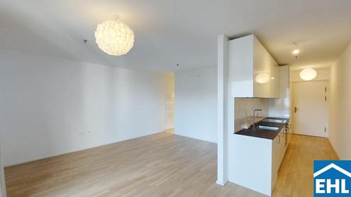 Sonnwendviertel: 1-Zimmer-Wohnung mit Balkon in der 8. Etage - Fitnessraum, Co-Working & Rooftop-Terrasse inklusive!