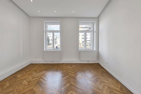 Diese Altbauwohnung in der Schönbrunner Straße 60 präsentiert sich als stilvolle Kombination aus klassischer Architektur und moderner Ausstattung. Schon beim Betreten fällt der Vorraum mit seinen großformatigen Feinsteinzeugfliesen und der klaren Linienführung ins Auge. Dezente Einbauleuchten in der Decke sorgen für eine angenehme Grundbeleuchtung, während die weißen Wände und Türen dem Eingangsbereich eine ruhige, elegante Atmosphäre verleihen. Von hier gelangt man direkt in die weiteren Räume der Wohnung. Die angrenzende Wohnküche bietet Platz für eine Küchenzeile und einen kleinen Essbereich. Der edle Fischgrätparkettboden schafft einen warmen Kontrast zu den weißen Wandflächen und betont den wohnlichen Charakter. Eine schlichte Wandnische mit Anschlüssen bietet praktischen Raum für Waschmaschine oder Stauraum. Der anschließende Wohn- und Schlafraum überzeugt durch seine klare Gestaltung, hohe Decken und die natürliche Helligkeit, die durch mehrere Fenster unterstrichen wird. Auch hier zieht sich der klassische Parkettboden in Fischgrätoptik als gestalterisches Element durch und verleiht dem Raum eine harmonische, großzügige Wirkung. Dezente Deckenspots sorgen für angenehmes Licht und unterstreichen den modernen Stil, ohne den Altbaucharakter zu überdecken. Das Badezimmer wurde mit viel Liebe zum Detail modernisiert und hochwertig ausgestattet. Großformatige Fliesen in ruhigen Grautönen und eine Dusche mit Glasabtrennung prägen das elegante Gesamtbild. Das Waschtischmöbel aus Holz setzt einen warmen Akzent, während der Handtuchheizkörper und die integrierte Beleuchtung den Komfort ergänzen. Lage Die Schönbrunner Straße 60 überzeugt mit ihrer zentralen Lage im lebendigen Margareten. Die Umgebung bietet eine hervorragende Infrastruktur mit Geschäften, Cafés und Restaurants sowie eine ausgezeichnete Verkehrsanbindung durch die nahe U4-Station "Pilgramgasse". Zudem befinden sich mehrere Buslinien in unmittelbarer Nähe, darunter die Linien 12A, 13A und 59A, die an der Station "Margaretenplatz/Schönbrunner Straße" halten. Diese vielfältigen Verkehrsanbindungen ermöglichen eine schnelle und bequeme Erreichbarkeit sowohl des Stadtzentrums als auch anderer Bezirke Wiens. Ebenso sorgen der Wienfluss, Parks und das nahegelegene Naschmarkt-Viertel für Freizeit- und Erholungsmöglichkeiten. Eine ideale Lage für alle, die urbanes Leben mit hervorragender Erreichbarkeit verbinden möchten. Ansprechpartner Herr Vladimir Adamovic || +43 699 17 55 66 41 || va@jpi.at Frau Doris Kurzweil || +43 699 17 55 66 16 || dk@jpi.at Wir weisen darauf hin, dass wir mit dem Abgeber in ständiger Geschäftsbeziehung stehen und schon aus diesem Grund ein wirtschaftliches Naheverhältnis vorliegt.Provision: 3%