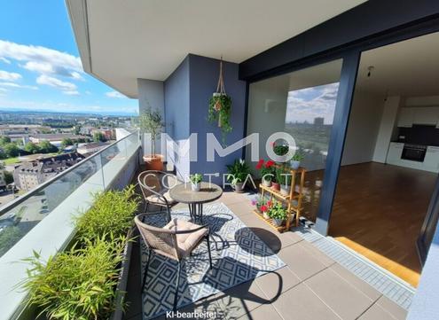 Willkommen in Ihrem neuen Zuhause in Linz! Diese neuwertige, 2019 erbaute Etagenwohnung bietet Ihnen modernes Wohnen auf ca. 57,3 m² Wohnfläche und insgesamt ca. 72,68 m² Nutzfläche. Die Immobilie befindet sich im 9. Geschoss der "LENAUTERRASSEN". Sie profitieren von einer ausgezeichneten Lage in der Stadt mit einzigartiger Aussicht. Die Wohnung bietet einen idealen Grundriss mit einer großzügigen Wohnküche (ablösefreie Einbauküche), ein gemütliches Schlafzimmer, elegantes Bad, WC und Abstellraum. Der hochwertige Parkettboden sorgt für eine warme und behagliche Atmosphäre. Die moderne, vollständig möblierte Küche lädt zum Kochen und Verweilen ein und ist ideal für Hobbyköche und Genießer. Ein besonderes Highlight dieser Wohnung sind die großzügigen Freiflächen (Loggia + Balkon), die zum Entspannen im Freien und zum Genießen der frischen Luft einlädt. Ob ein gemütlicher Morgenkaffee oder ein Abend mit Freunden, diese Terrasse bietet Ihnen Freiraum und Privatsphäre. Die Lage in Linz bietet nicht nur eine hervorragende Anbindung an das Stadtzentrum, sondern auch an alle wesentlichen Einrichtungen, Geschäfte und öffentlichen Verkehrsmittel. Bushaltestelle ~ 80 m Straßenbahn ~ 700 m Bahnhof ~ 1,5 km Ein Supermarkt und eine Apotheke befinden sich im Haus. Eine Vielzahl von weiteren Einkaufsmöglichkeiten sowie einer Bank (SPARDA-BANK) finden Sie im LENAUPARK gegenüber. Machen Sie diese charmante Wohnung zu Ihrem neuen Zuhause und genießen Sie den Komfort und die Annehmlichkeiten, die sie zu bieten hat. Nutzen Sie diese Gelegenheit, eine der begehrten Mietwohnungen in Linz zu mieten und vereinbaren Sie noch heute einen Besichtigungstermin! Ein Kellerabteil gehört fix zur Wohnung und ein Allgemeingarten kann von allen Bewohnern genutzt werden. * Die Kosten für Heizung, Strom und Kabel-TV sind in diesem Betrag nicht enthalten. * Teilweise wurden Musterfotos verwendet, Ausstattung ist ident. Der Immobilienmakler erklärt, dass er entgegen dem in der Immobilienwirtschaft üblichen Geschäftsgebrauch des Doppelmaklers einseitig nur für den Vermieter tätig ist.Infrastruktur / EntfernungenGesundheitArzt