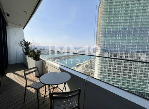 Exklusiver Erstbezug: Top Zweizimmer-Wohnung mit edler Küche Zum Verkauf steht ein außergewöhnliches Apartment, das durch seinen durchdachten Grundriss glänzt. Der geräumige Wohn-Essbereich ist mit einer hochwertigen Tischlerküche mit Markengeräten ausgestattet, gesellige Abende im Kreise der Lieben sind garantiert! Die großzügige Raumhöhe von 2,8 Metern in Kombination mit großflächigen Verglasungen verleiht dem Apartment ein offenes, luftiges Wohngefühl. Das Schlafzimmer überzeugt mit einem praktischen en-suite Badezimmer stilvoll und funktional zugleich. Das modern ausgestattete Badezimmer bietet neben Dusche, Waschtisch, Handwaschbecken auch einen Handtuchtrockner, der gemeinsam mit der Fußbodenheizung gemütliche Stunden garantiert. Der begrünte Balkon, der von beiden Zimmern aus begehbar ist, erweitert den Wohnraum ins Freie und bietet einen idyllischen Rückzugsort mitten in der Stadt - Top-Ausblick und Sonneuntergang inklusive! Ein echtes Highlight: Der Blick auf die Neue Donau, die Skyline der City sowie den Ausläufern der Wiener Hausberge eine seltene Kombination, die urbane Eleganz mit Naturverbundenheit vereint. Hat dieses Inserat Ihr Interesse geweckt Fragen Sie gleich an um weiterführende Informationen zu erhalten! © tschinkersten fotografie Wir weisen darauf hin, dass zwischen dem Vermittler und dem zu vermittelnden Dritten ein familiäres oder wirtschaftliches Naheverhältnis besteht. Der Vermittler ist als Doppelmakler tätig.Infrastruktur / EntfernungenGesundheitArzt